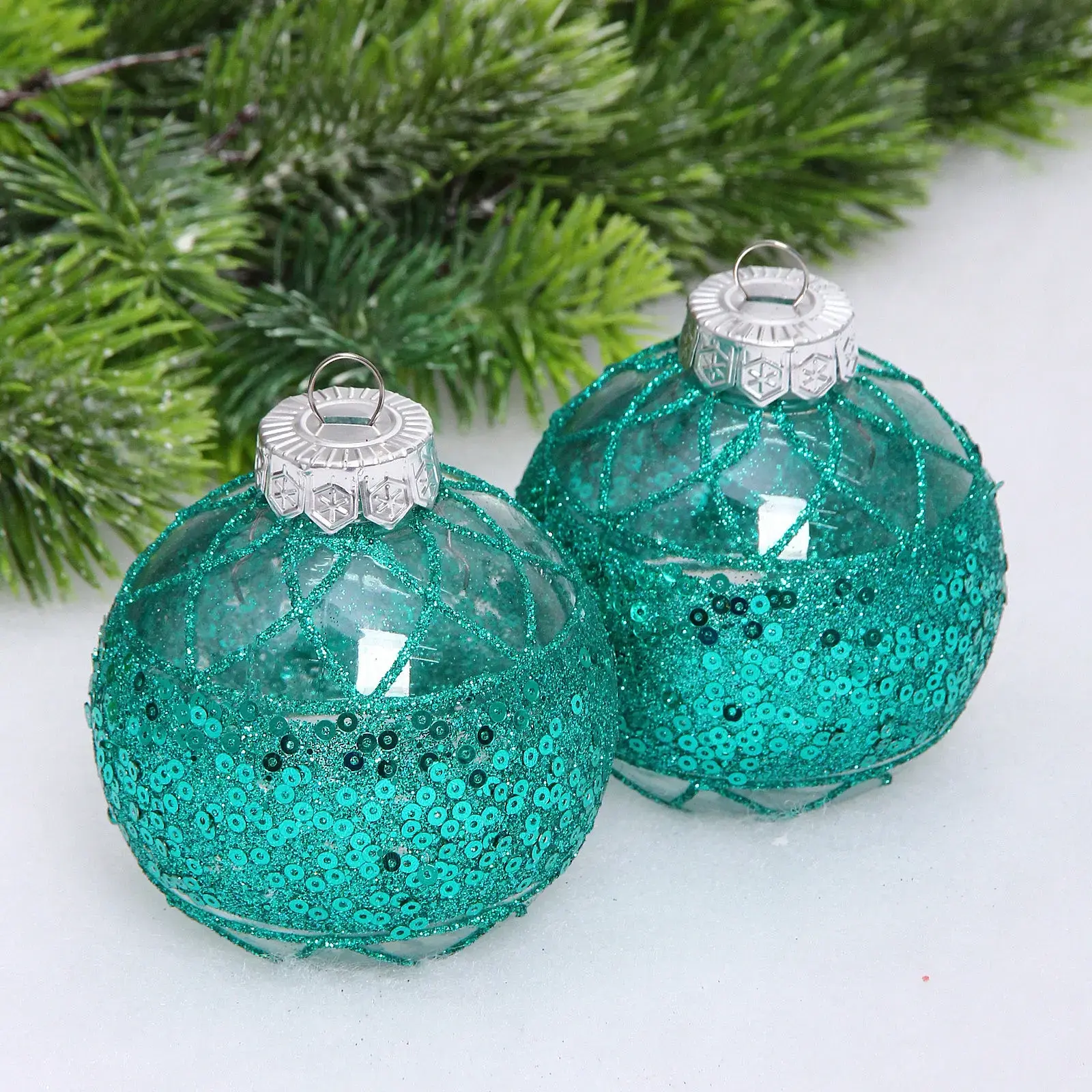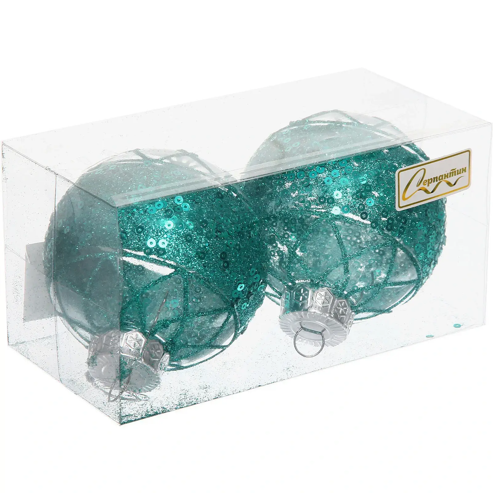 Набор шаров «Лазурная дымка « 8 см (в наборе 2 шт), Малахитовый зеленый, пластик, для елки и декорирования