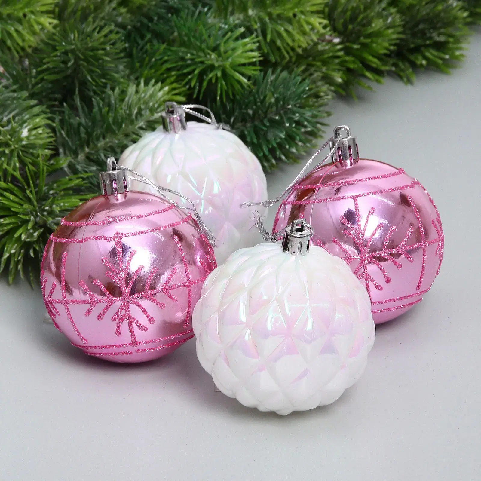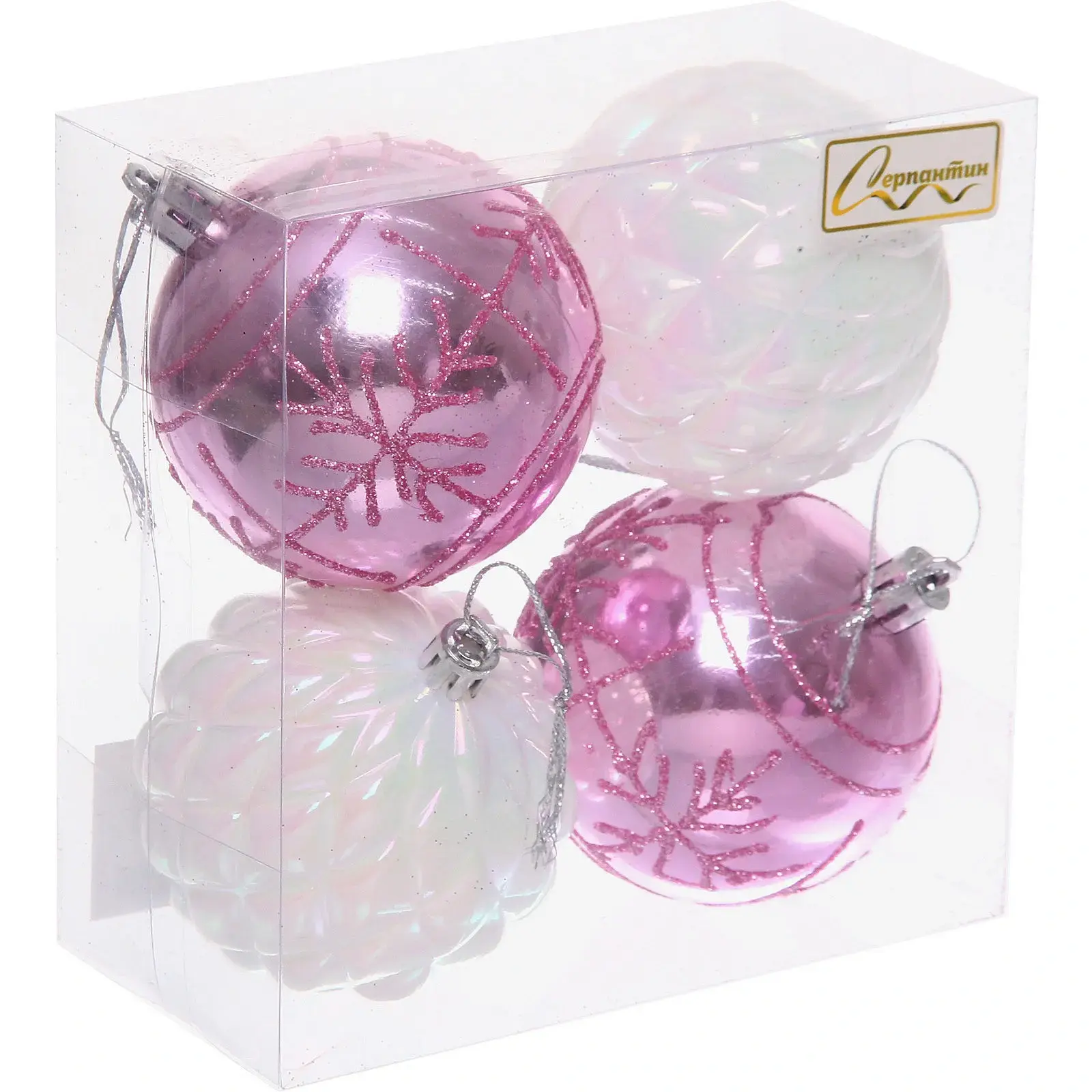 Набор шаров «Метелица» 7 см (в наборе 4 шт), Белый, розовый, пластик, для елки и декорирования