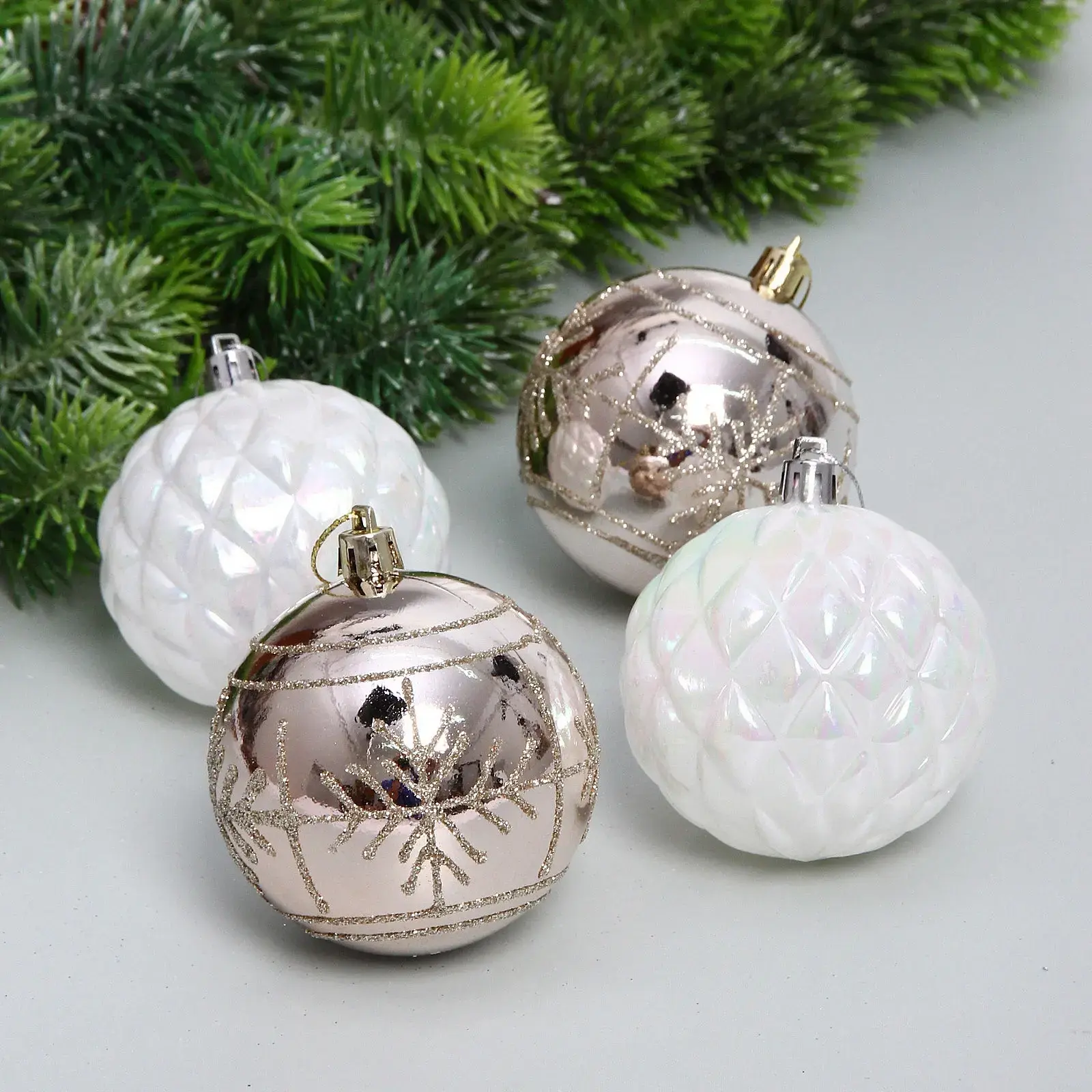 Набор шаров «Метелица» 7 см (в наборе 4 шт), Белый, шампань, пластик, для елки и декорирования