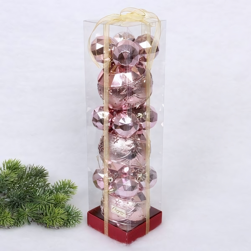 Материал — прочный ПВХ, устойчивый к повреждениям и безопасный для детей. Шары сохранят вид и блеск в течение многих сезонов, не тускнеют и не бьются при случайном падении. Упаковка дополнена декоративной лентой, что делает набор не только практичным, но и презентабельным — идеально для подарка к Новому году.