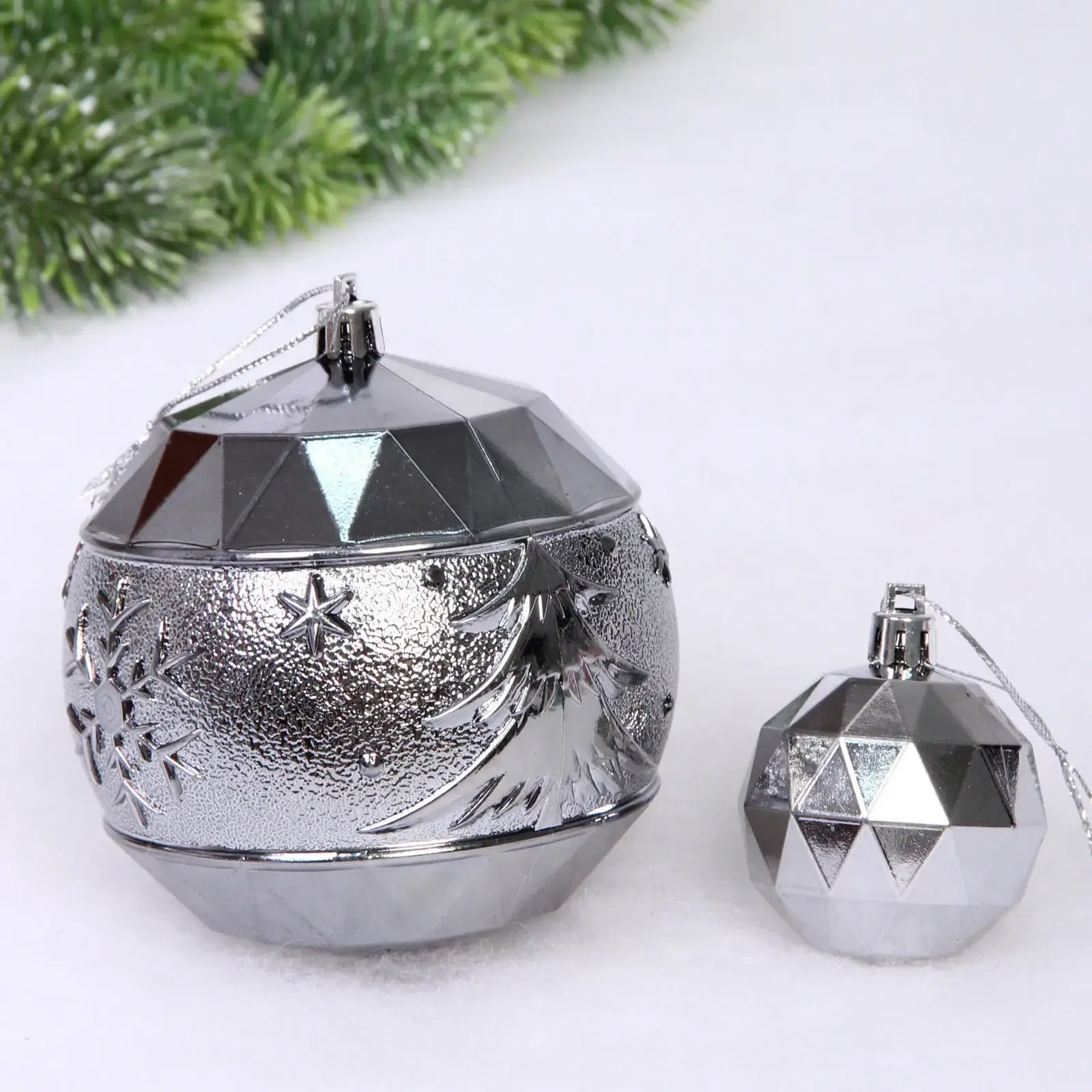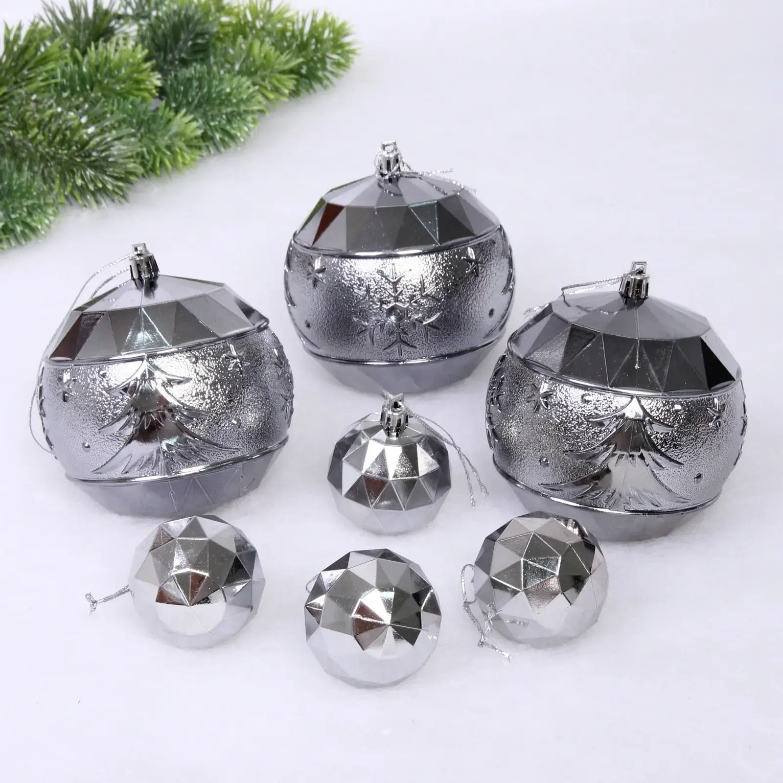 Выбирая набор шаров «Miracle», вы получаете не только красивый декор, но и практичное решение для украшения. Шары имеют гладкую и граненую поверхность, что создает эффект блеска и отражения света, добавляя яркости вашему празднику. Легкость в использовании и возможность многократного применения делают этот набор идеальным выбором для тех, кто ценит качество и стиль.