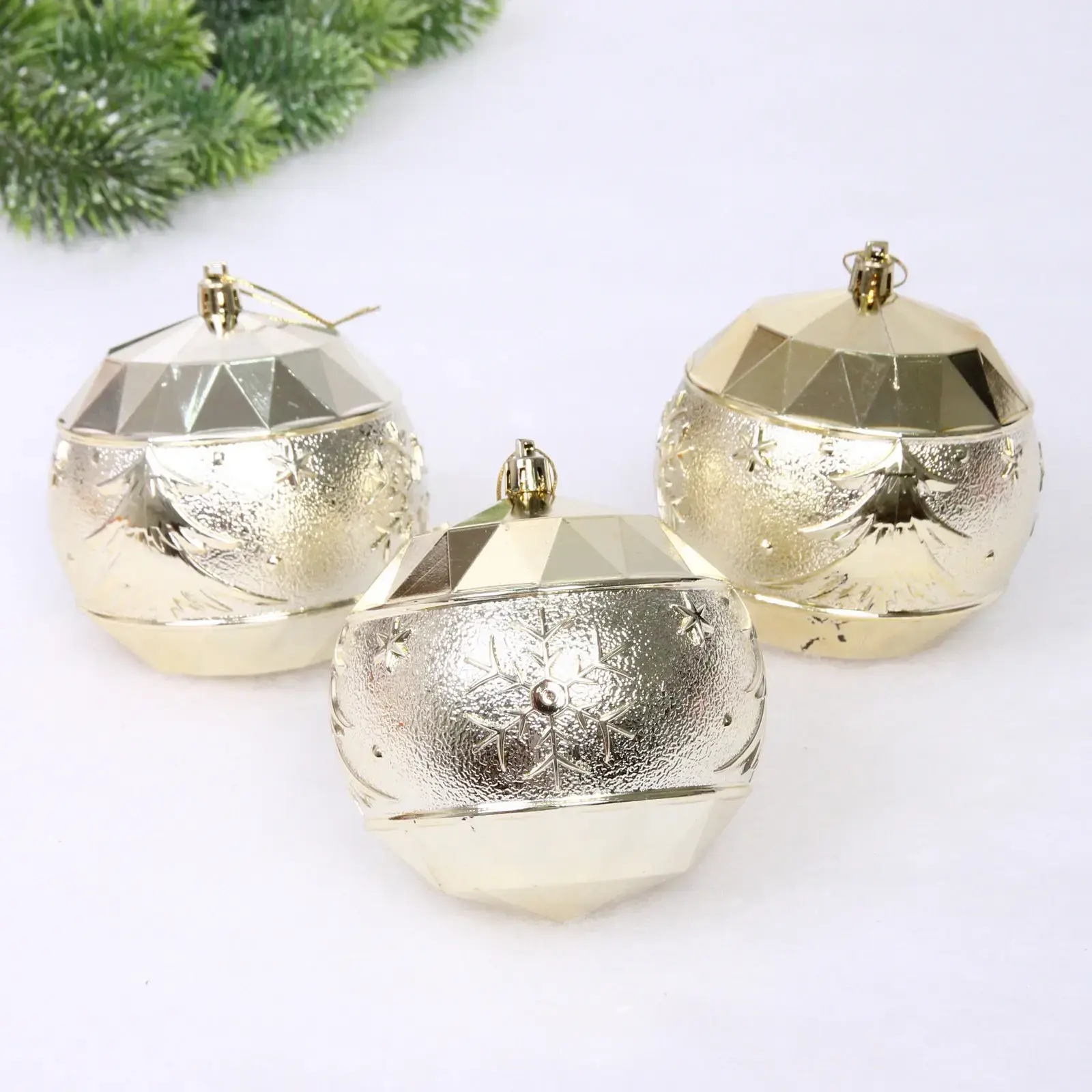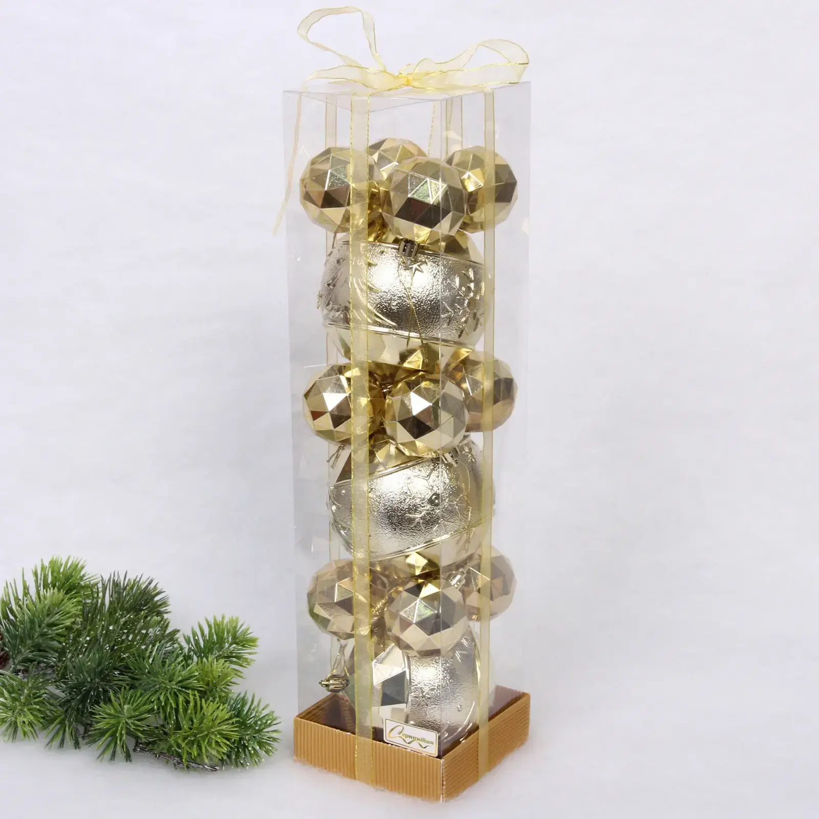 Каждый шар имеет стандартный размер, что делает их идеальными для использования в любых новогодних композициях. Упаковка выполнена в прозрачном дизайне, что позволяет видеть содержимое и делает набор отличным подарком. Пластиковый материал обеспечивает легкость и безопасность, что особенно важно при использовании в домах с детьми и животными.