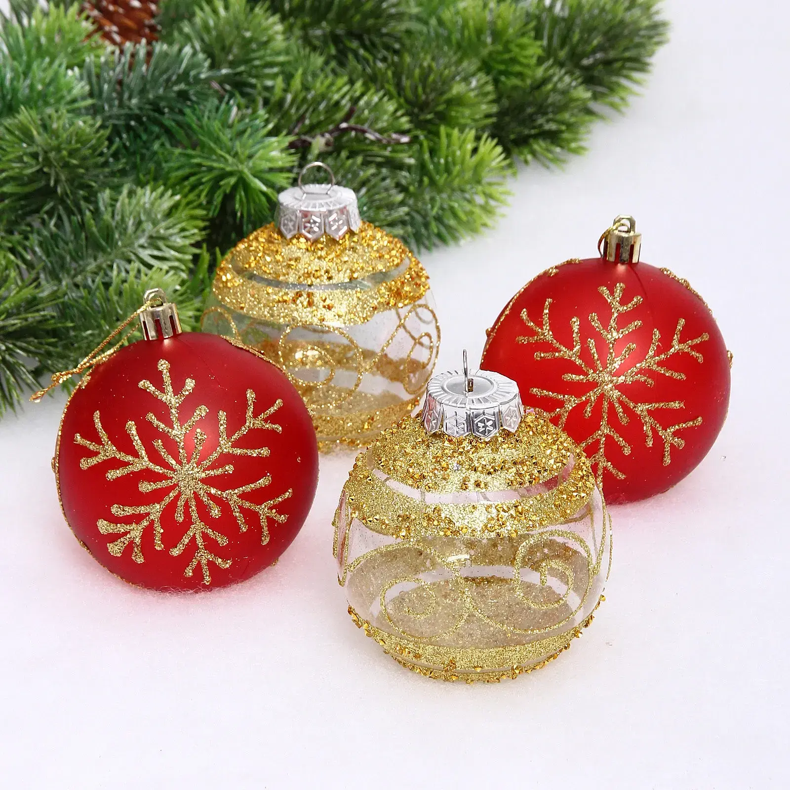 Набор шаров «Морозная вуаль» 8 см (в наборе 4 шт), Красный, золото, пластик, для елки и декорирования
