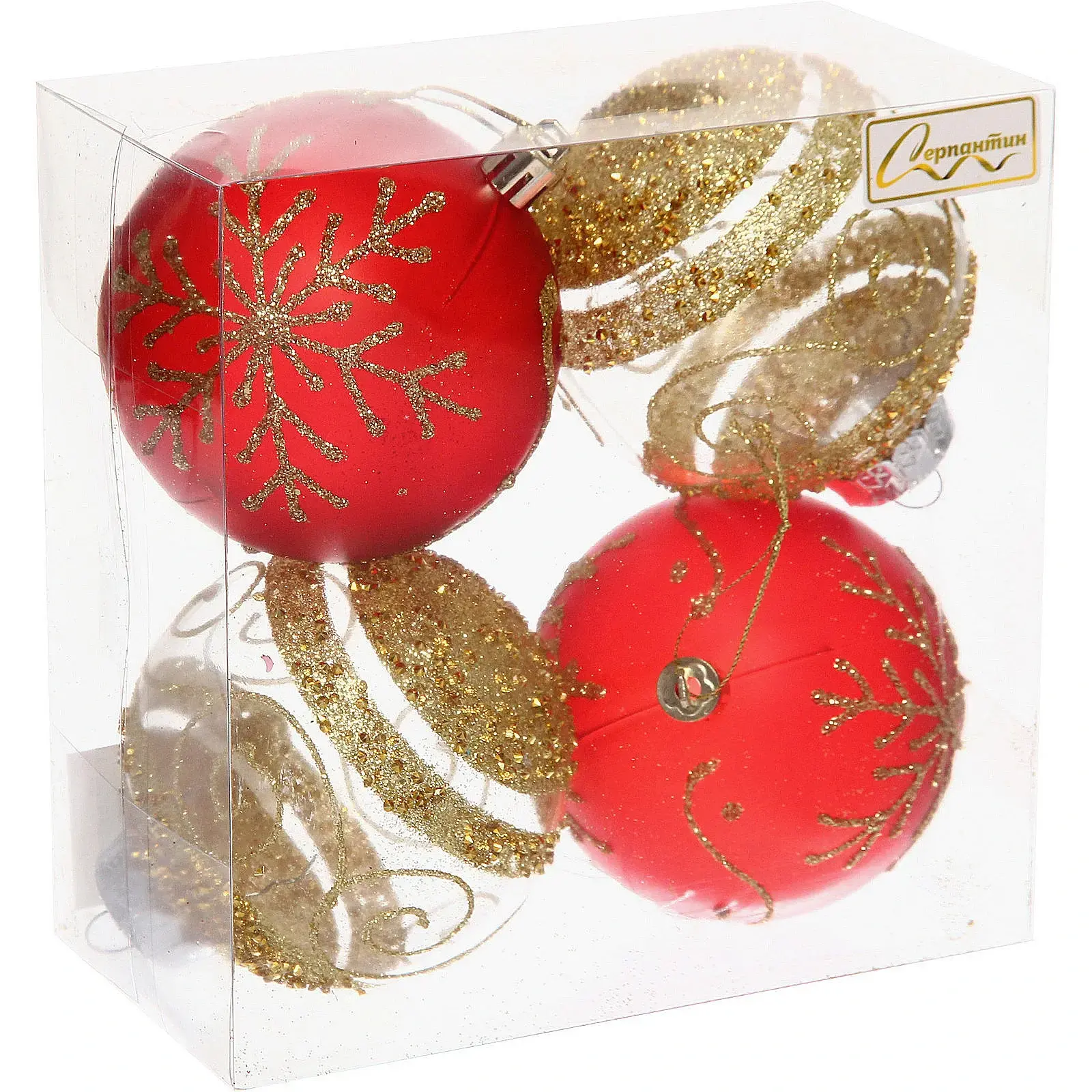 Преобразите вашу новогоднюю елку с изысканным набором украшений, сочетающим классический красный цвет с роскошным золотым декором. Четыре стильных шара создают гармоничную композицию, которая станет центром внимания на любом празднике.