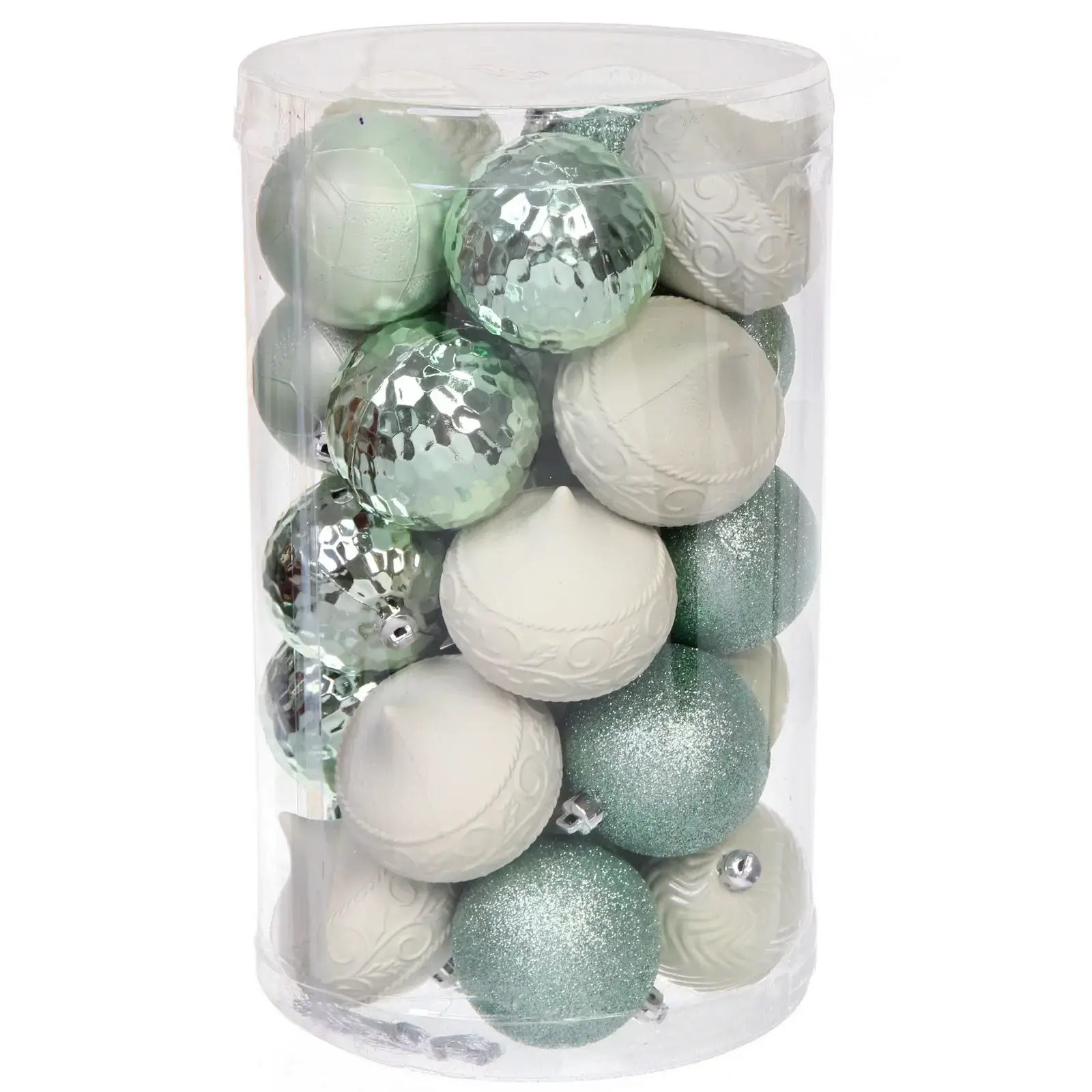 Набор шаров «Мятная нежность» 7/5 см (набор 24 шт), Мятный/Шампань, пластик, для елки и декорирования