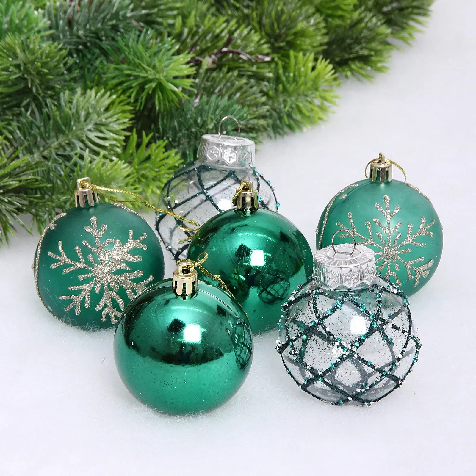 Набор шаров «Очарование» 6 см (в наборе 6 шт), Изумруд, пластик, для елки и декорирования