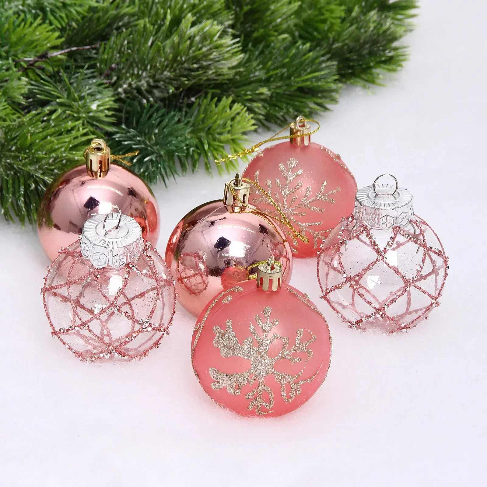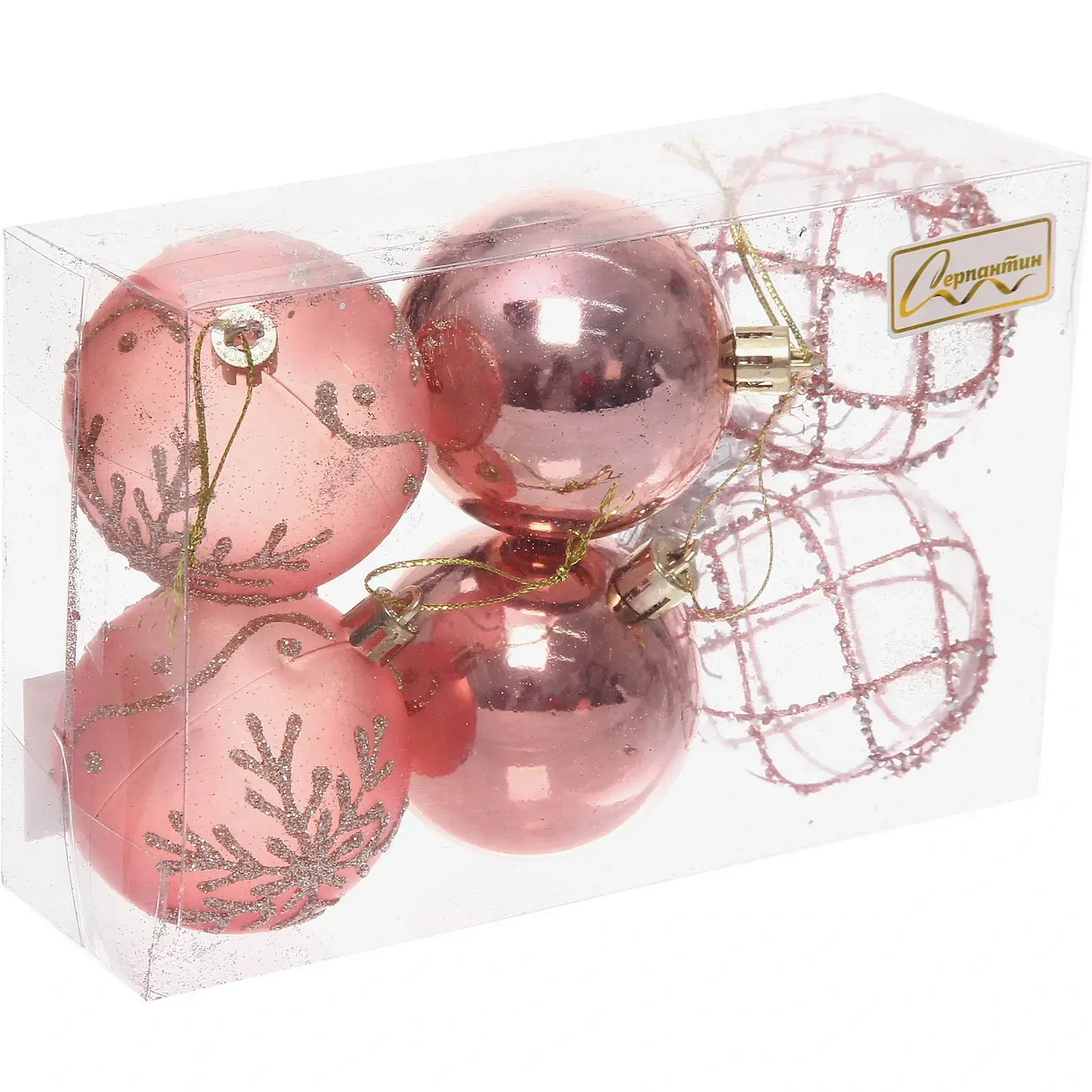 Набор шаров «Очарование» 6 см (в наборе 6 шт), Розовое золото, пластик, для елки и декорирования