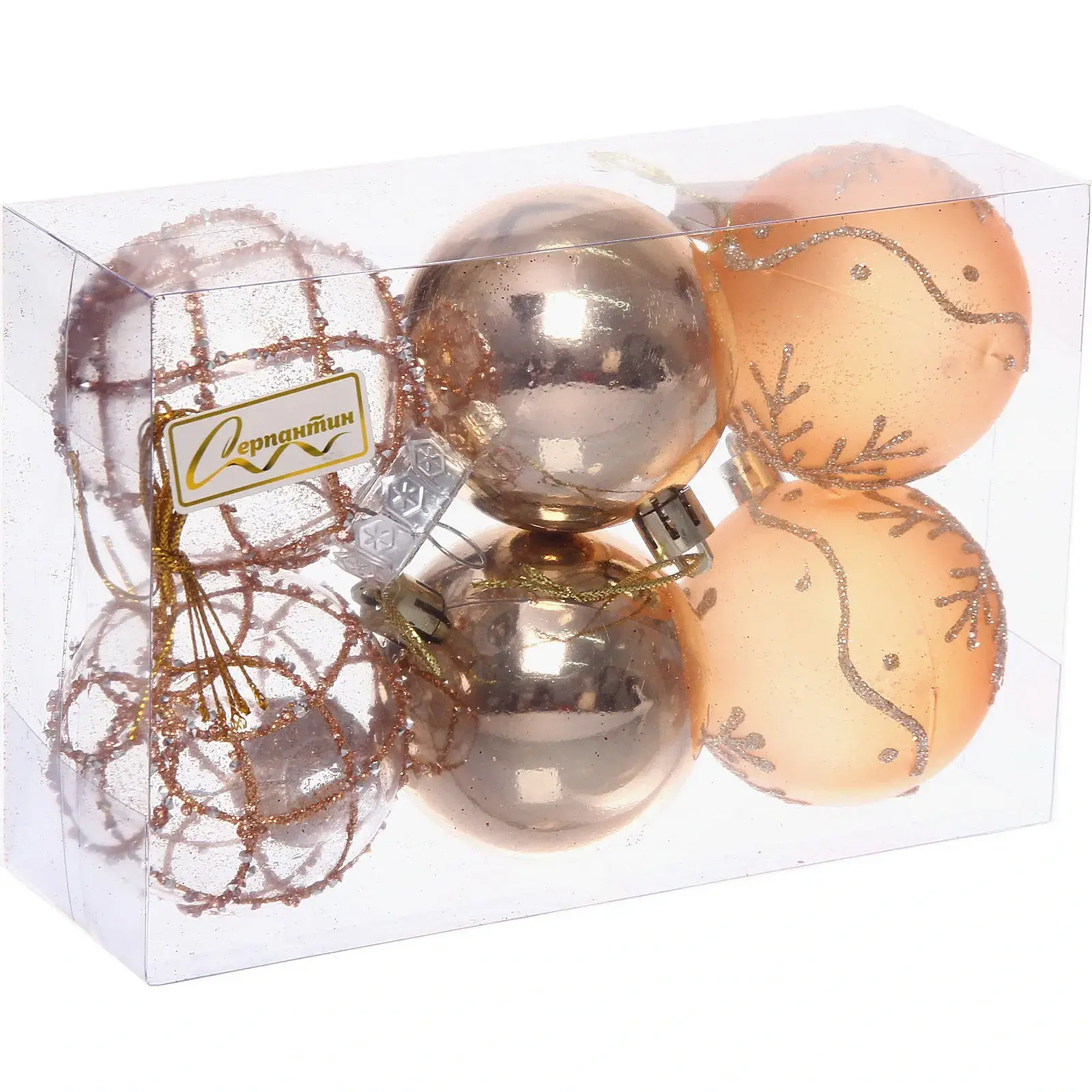 Набор шаров «Очарование» 6 см (в наборе 6 шт), Янтарь, пластик, для елки и декорирования