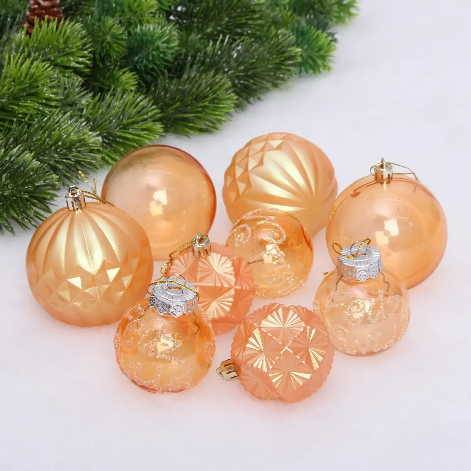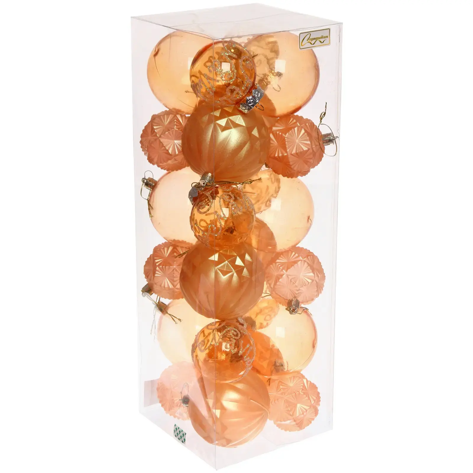 Набор шаров «Подарочек для елочек» (в наборе 8 см 12 шт + 6 см 12 шт), Янтарь, пластик, для елки и декорирования