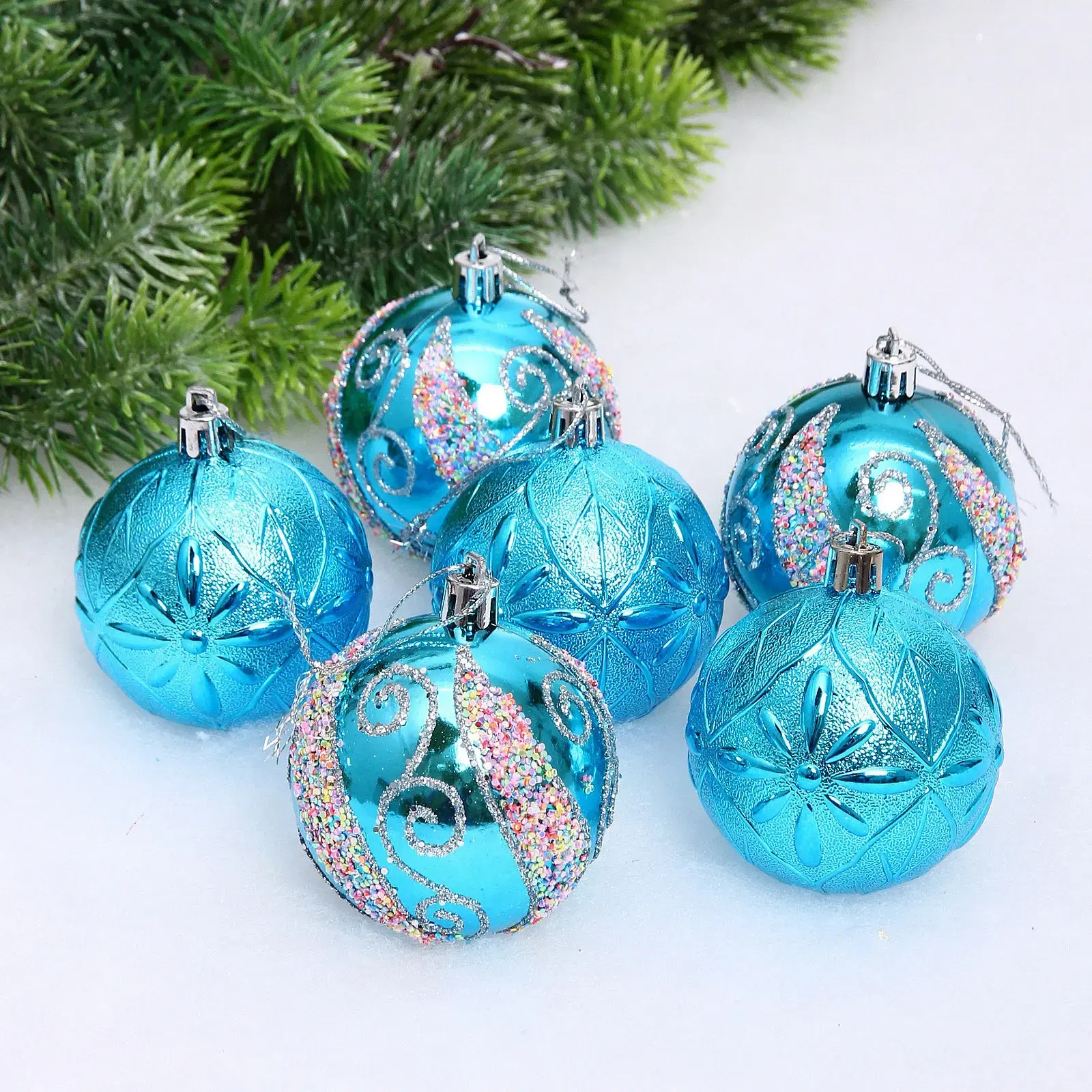 Набор шаров «Шарм» 6 см (в наборе 6 шт), Лазурный, пластик, для елки и декорирования