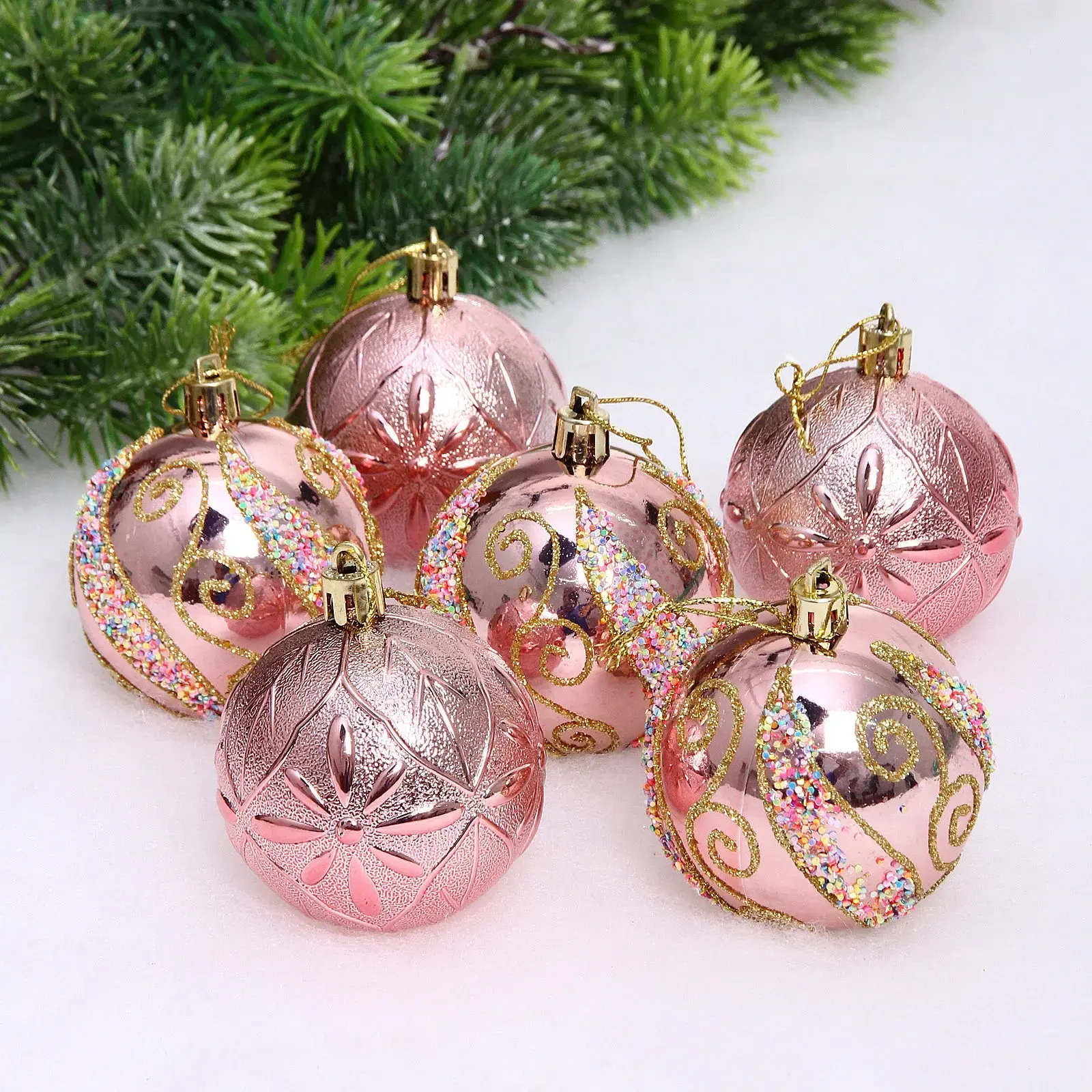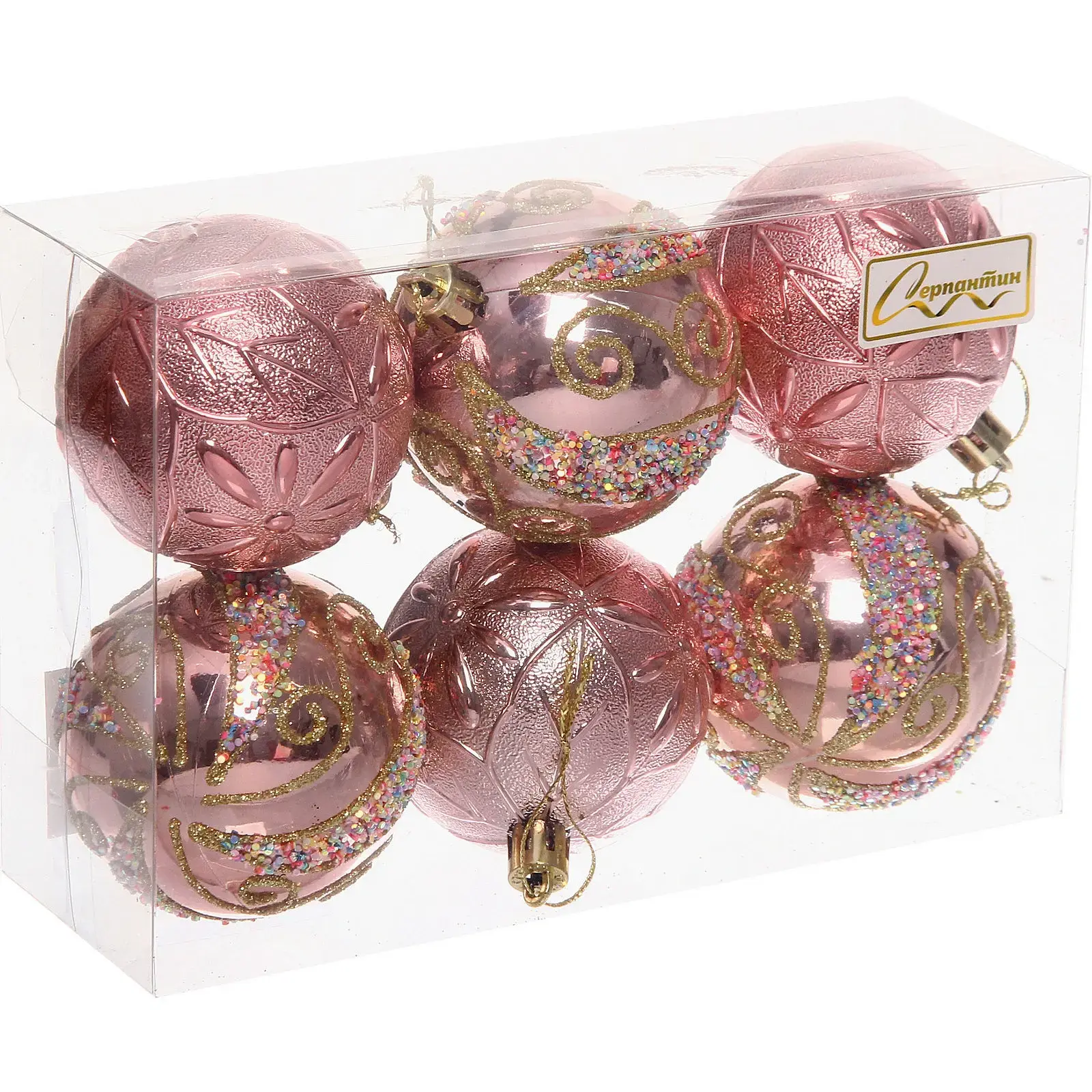 Набор шаров «Шарм» 6 см (в наборе 6 шт), Розовое золото, пластик, для елки и декорирования