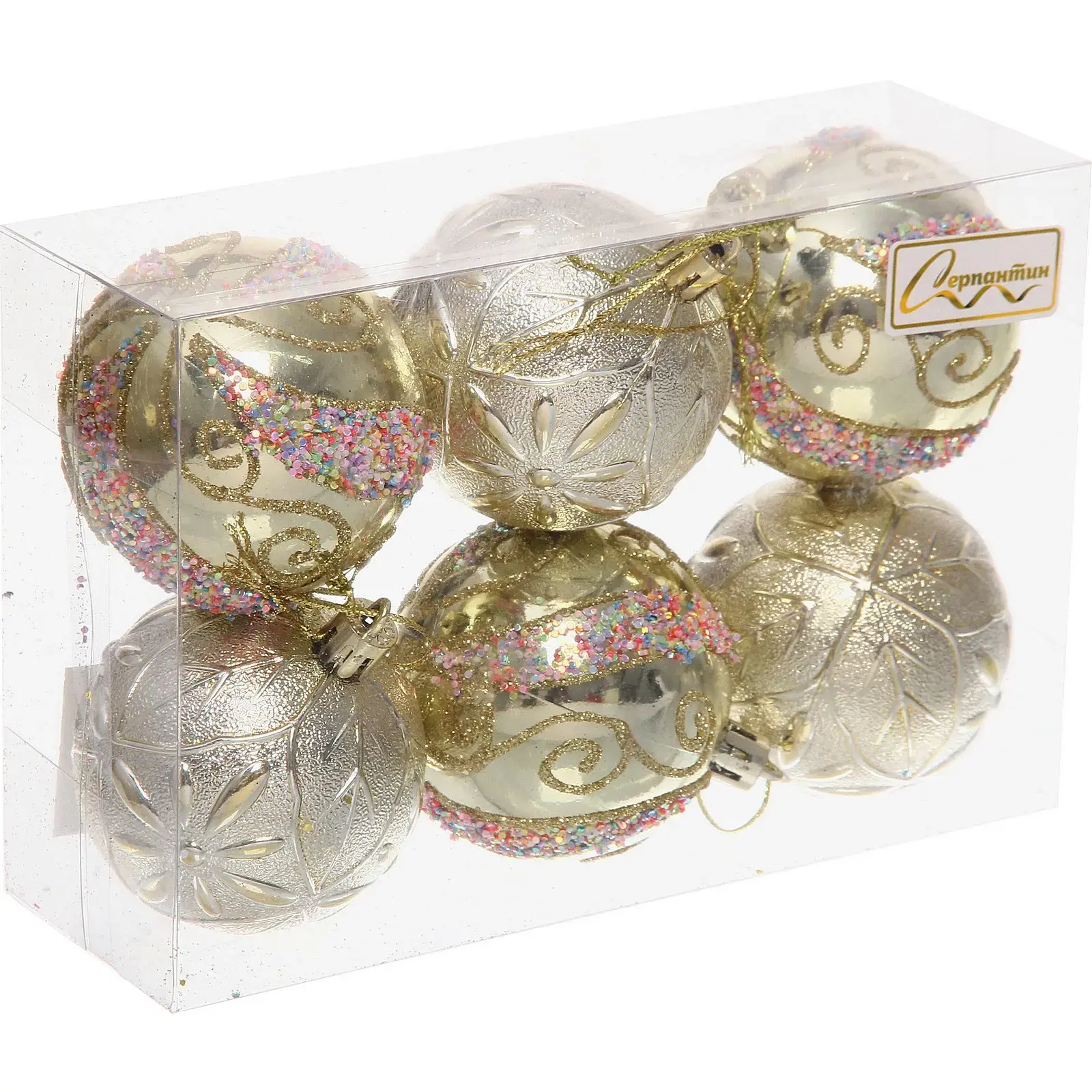 Набор шаров «Шарм» 6 см (в наборе 6 шт), Золото, пластик, для елки и декорирования
