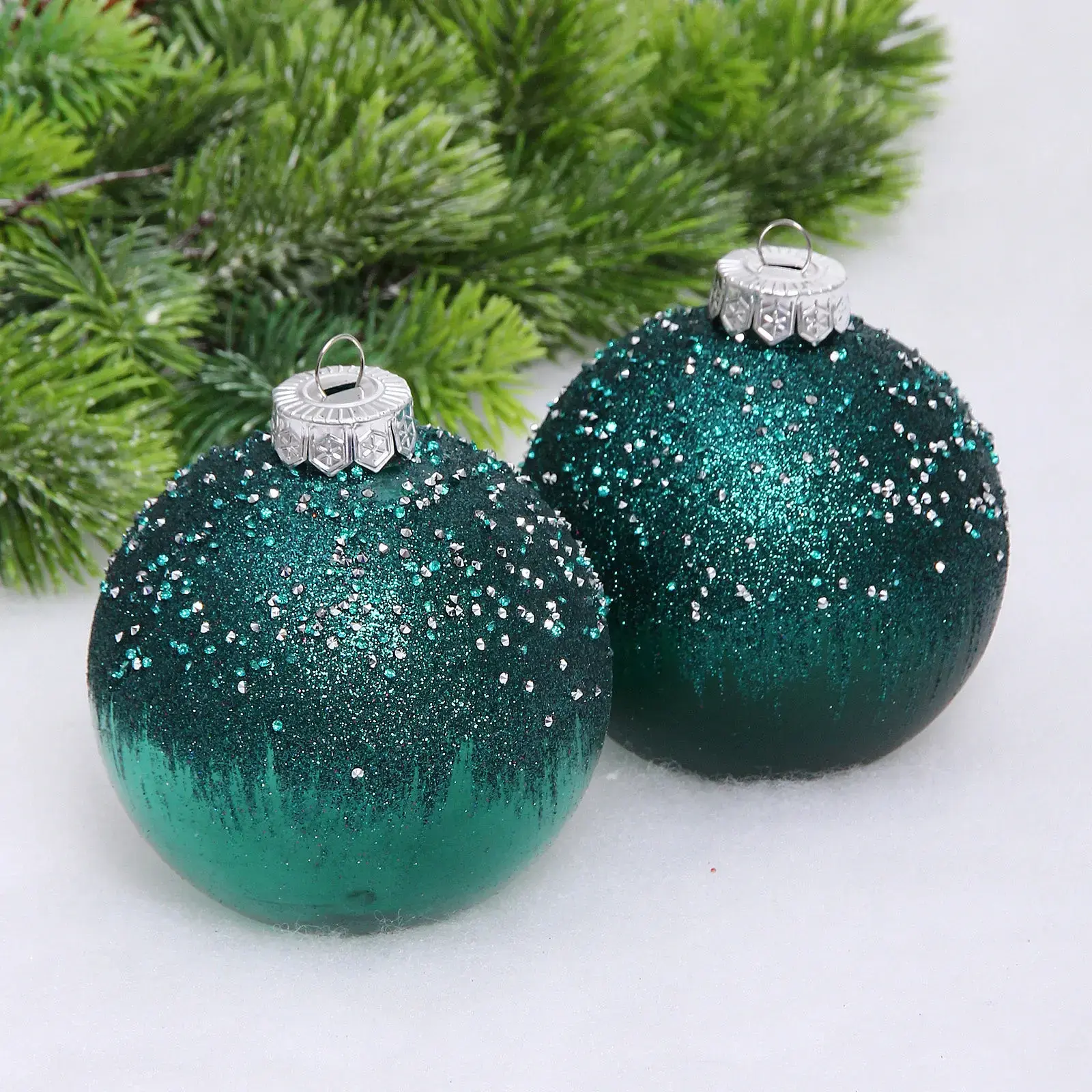 Размер каждого шара: 10 см в диаметре. Материал: высококачественный пластик с декоративным напылением. Цвет: градиентный переход от изумрудно-зеленого к глубокому черному с серебристыми акцентами.