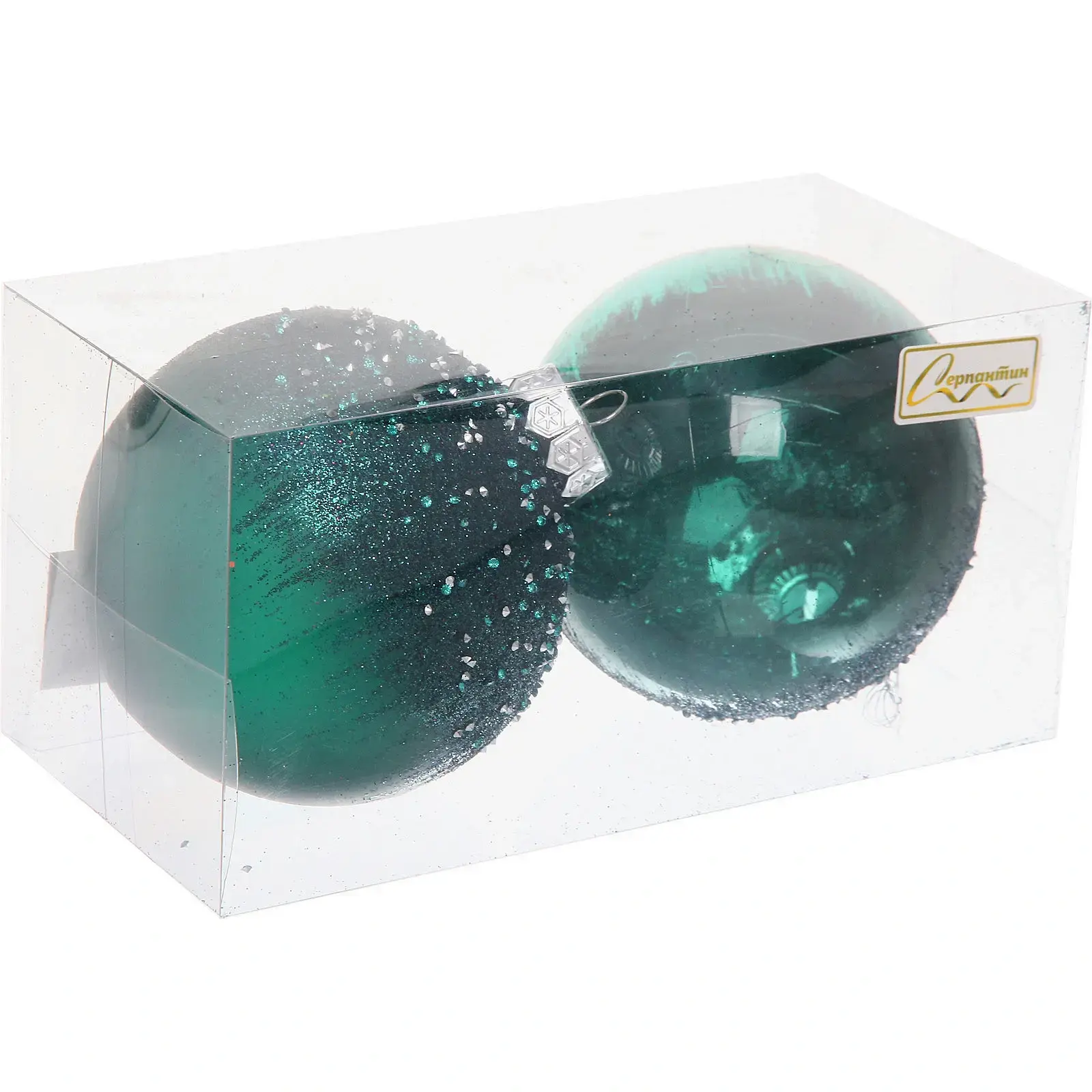 Набор шаров «Сказочная полночь» 10 см (в наборе 2 шт), Изумруд, пластик, для елки и декорирования