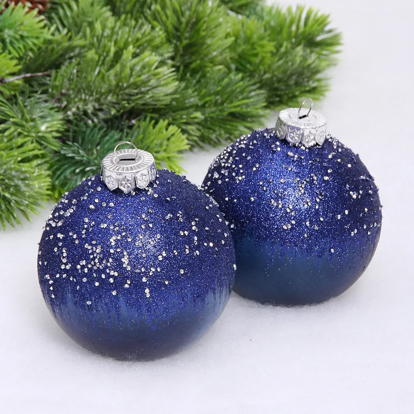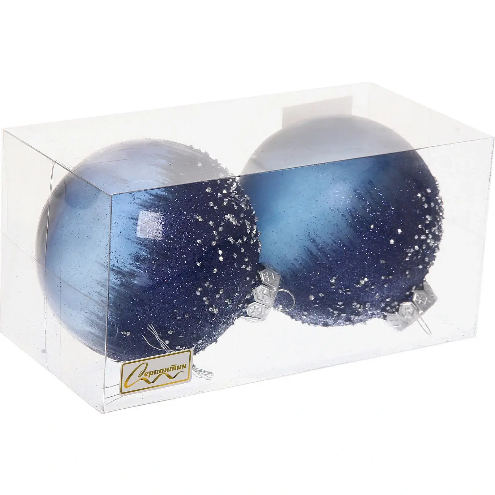 Набор шаров «Сказочная полночь» 10 см (в наборе 2 шт), Сапфир, пластик, для елки и декорирования