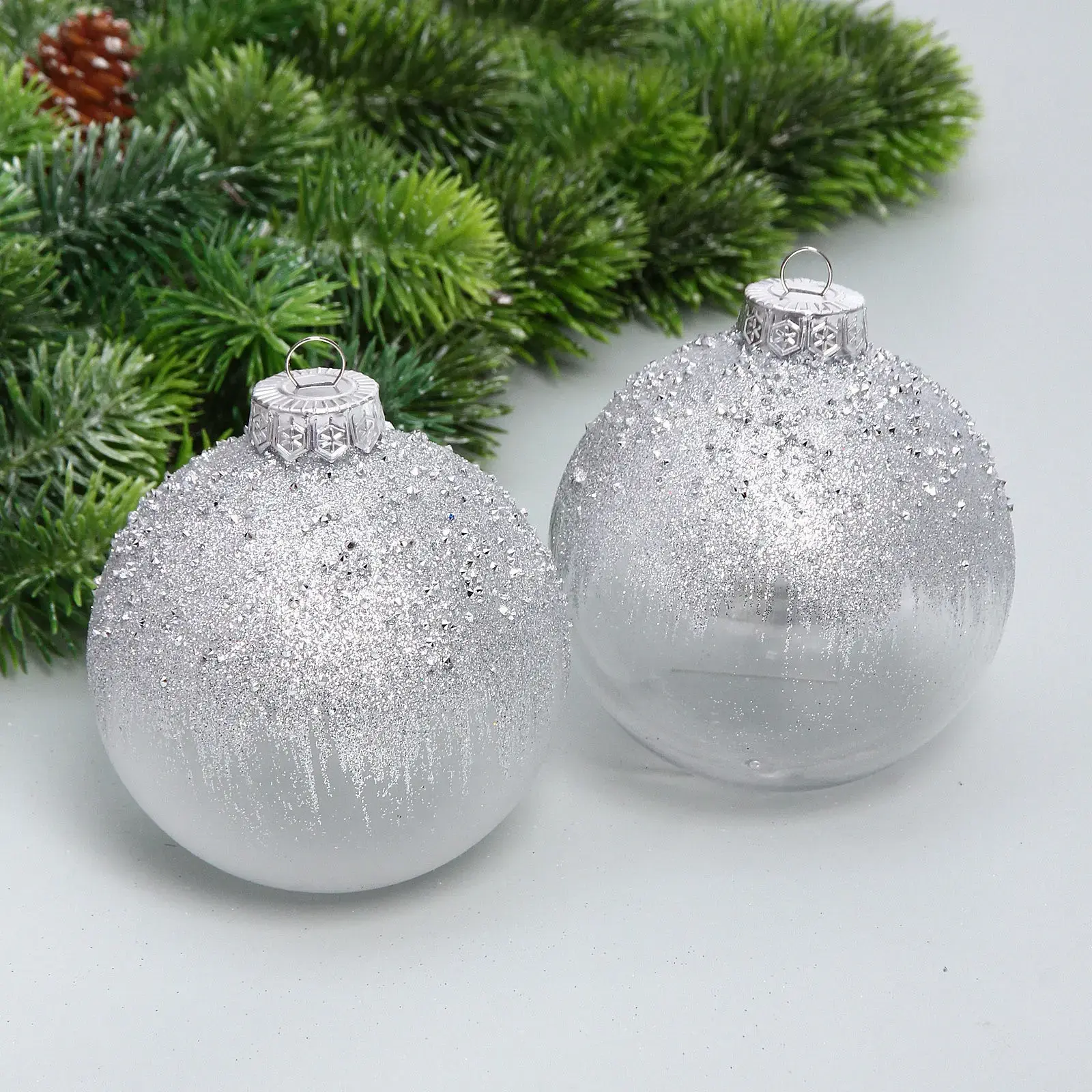Шары изготовлены из прочного пластика с глянцевым покрытием, устойчивым к механическим повреждениям. Специальное покрытие создает эффект мерцающего инея, что делает их особенно привлекательными при любом освещении. Компактный размер (10 см) позволяет разместить украшения даже в небольших помещениях.