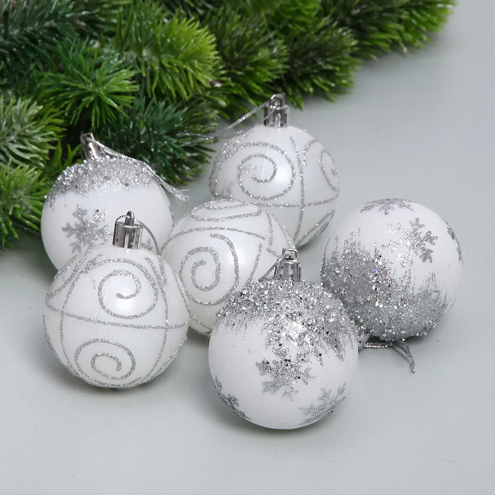 Набор шаров «Снежный тепет» 6 см (в наборе 6 шт), Белый, пластик, для елки и декорирования