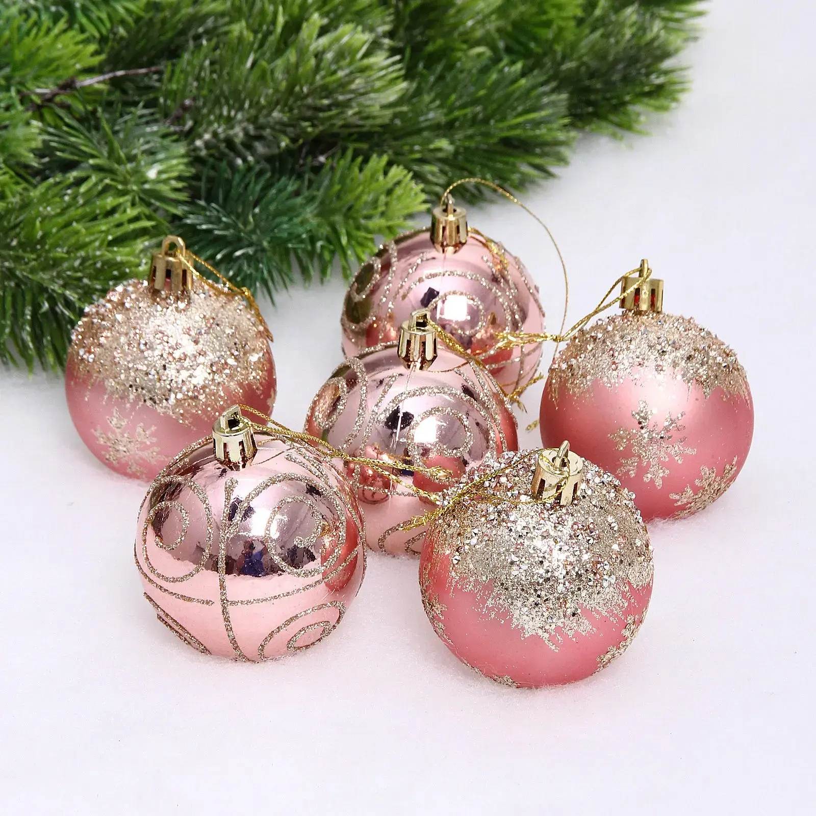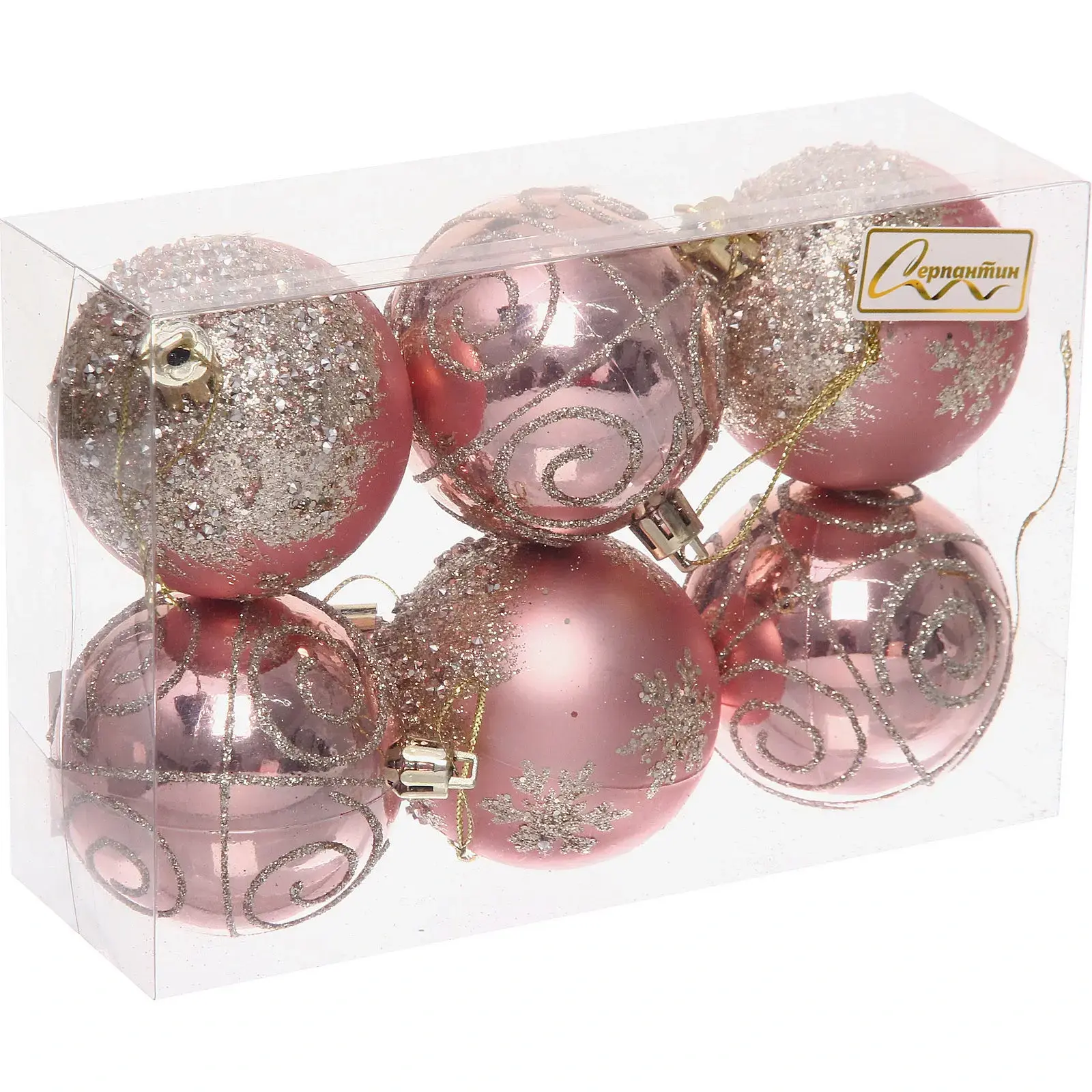 Набор шаров «Снежный тепет» 6 см (в наборе 6 шт), Розоое золото, пластик, для елки и декорирования