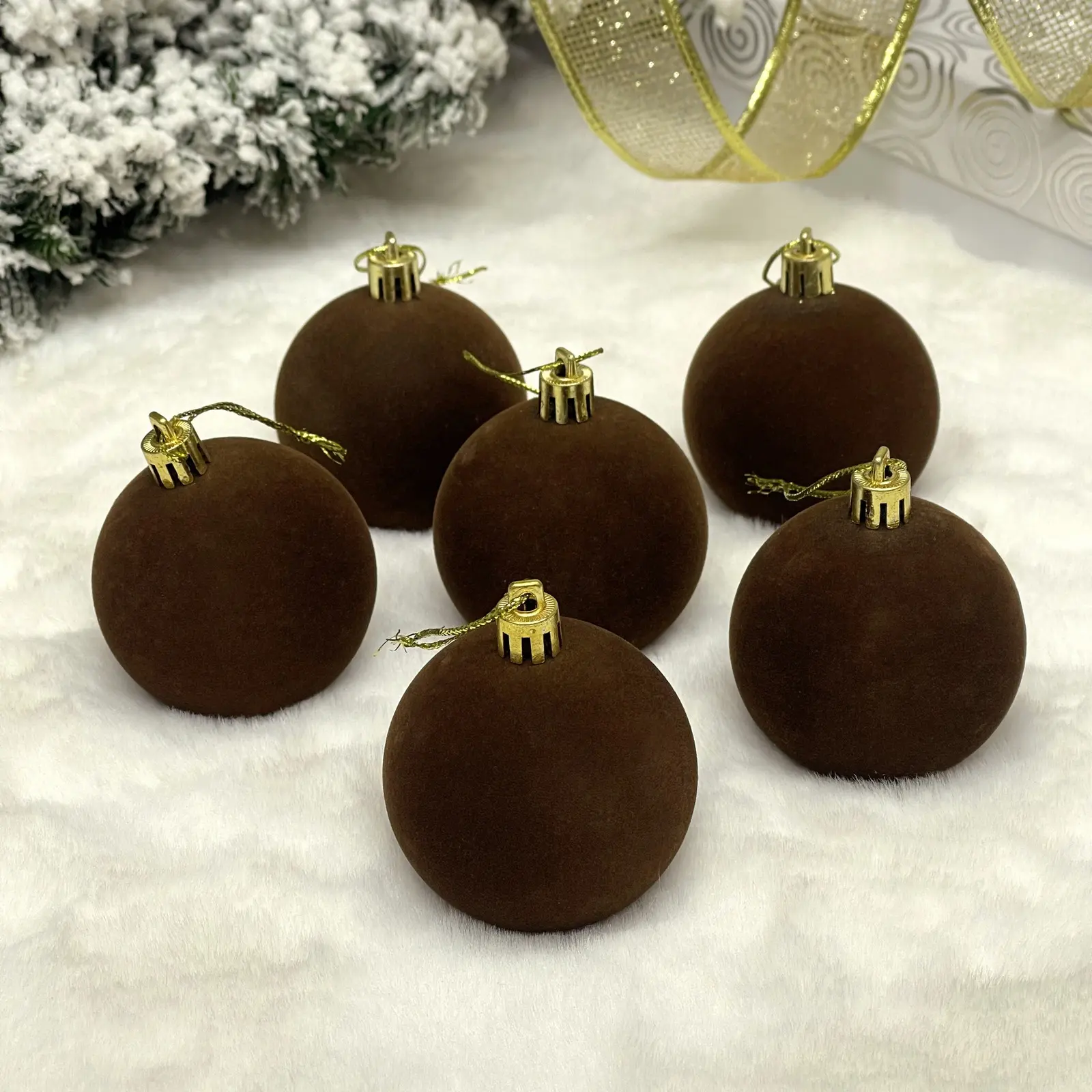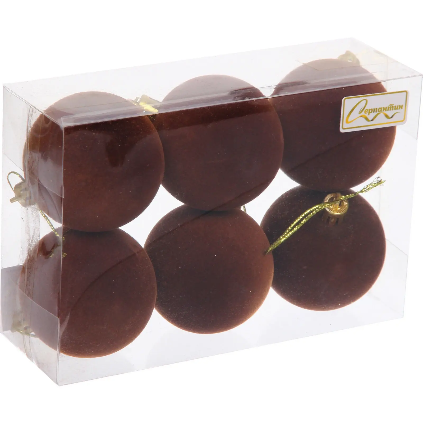 Набор шаров VELOUR «Нежный бархат» 6 см (набор 6 шт), Шоколад, пластик, для елки и декорирования