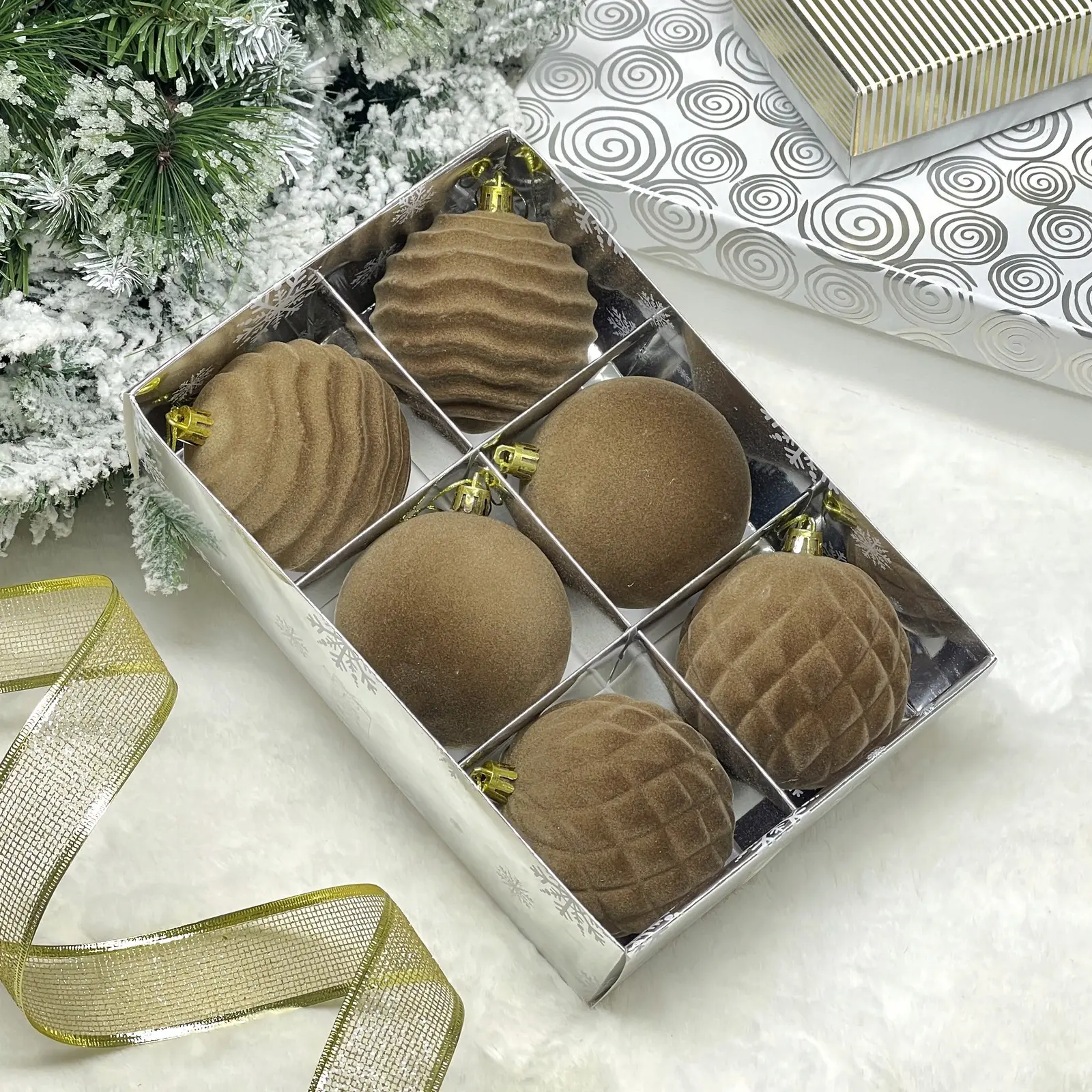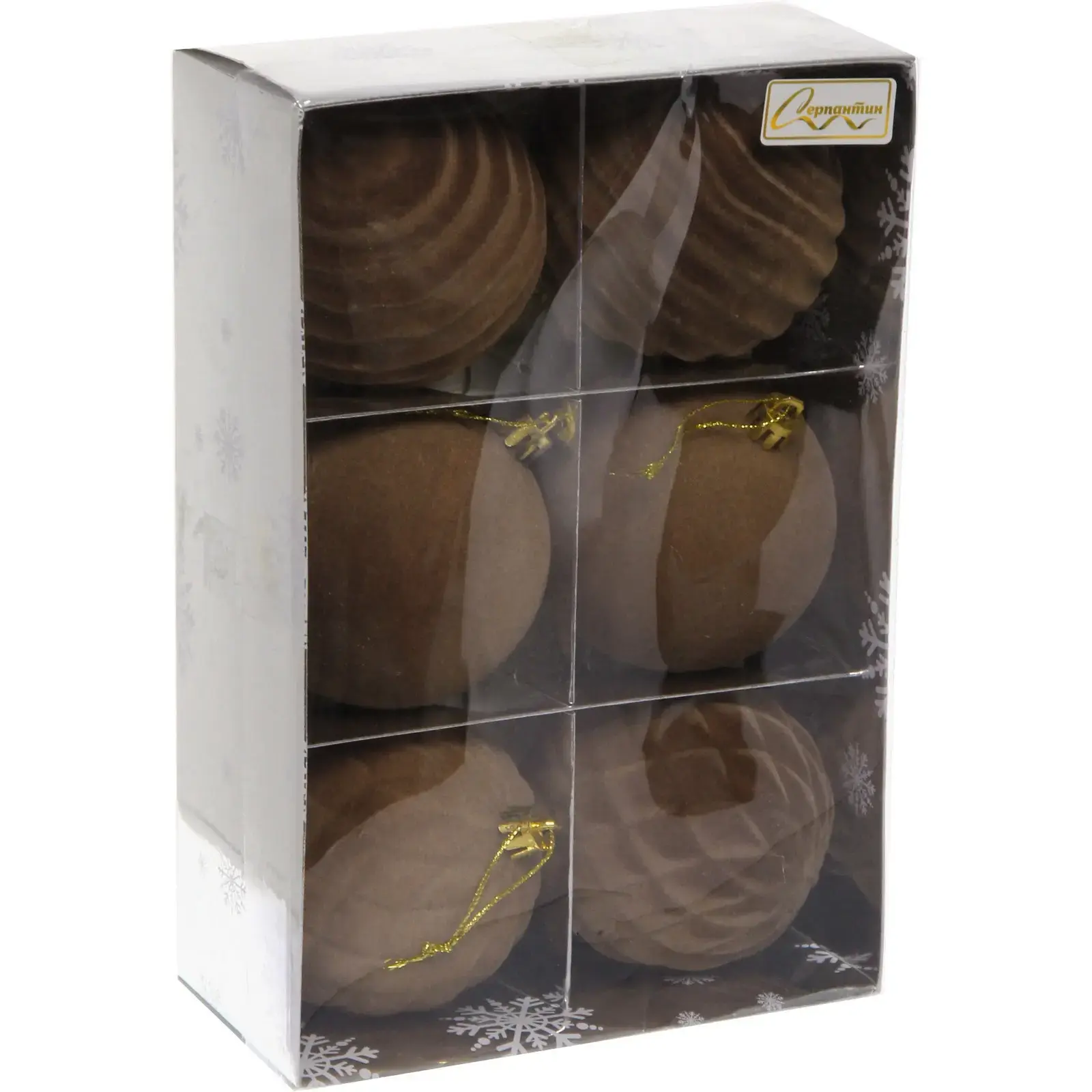 Набор шаров VELOUR «Стильная зима» 8 см (набор 6 шт), Кофейный, пластик, для елки и декорирования