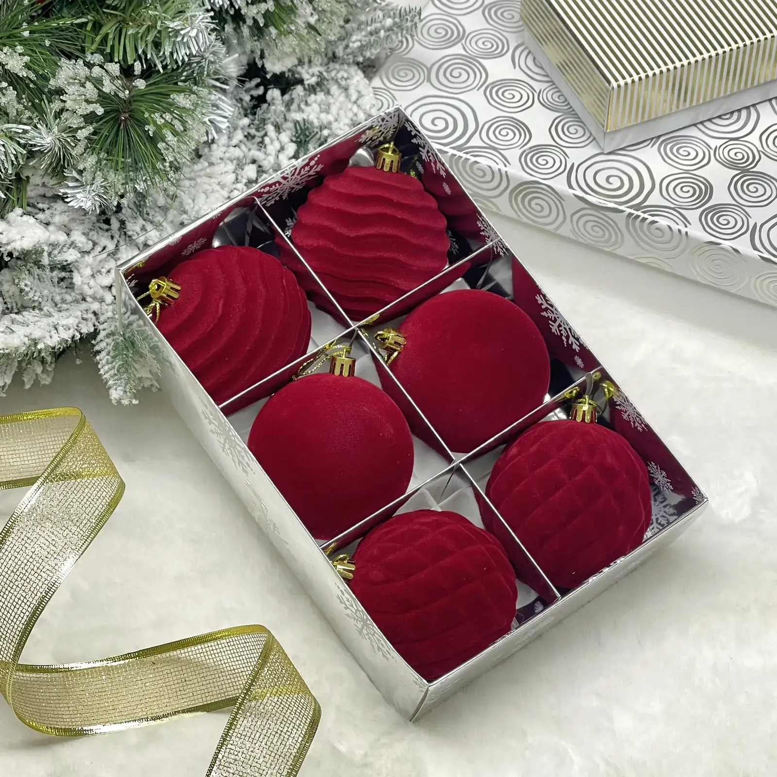 Эксклюзивный набор из 6 велюровых шаров премиум-класса станет идеальным украшением вашей новогодней елки и добавит праздничного настроения в ваш дом.