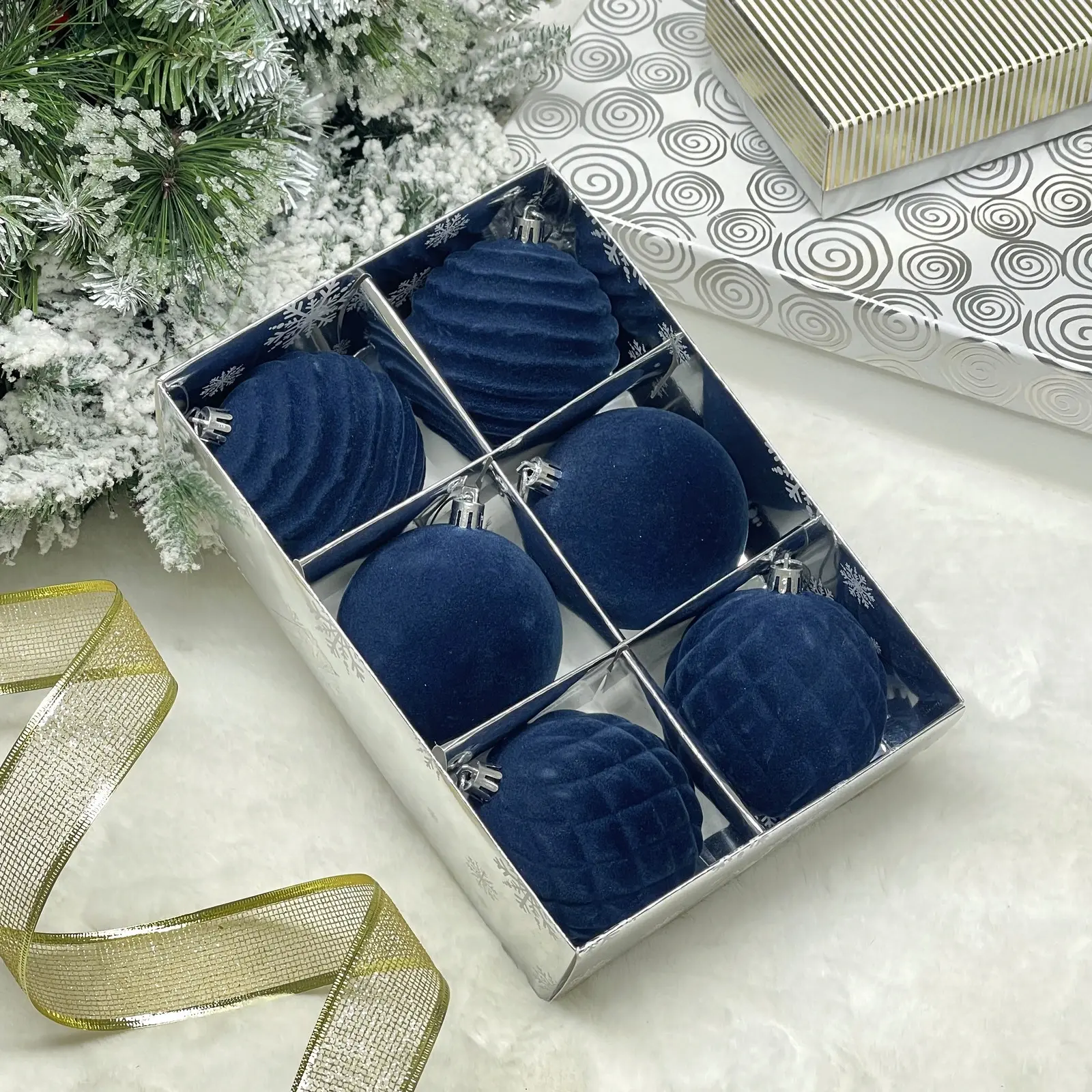 Каждый шар имеет диаметр 8 см, что делает их универсальными для украшения как небольших, так и крупных ёлок. Компактная коробка со специальными ячейками обеспечивает удобное хранение после праздников.