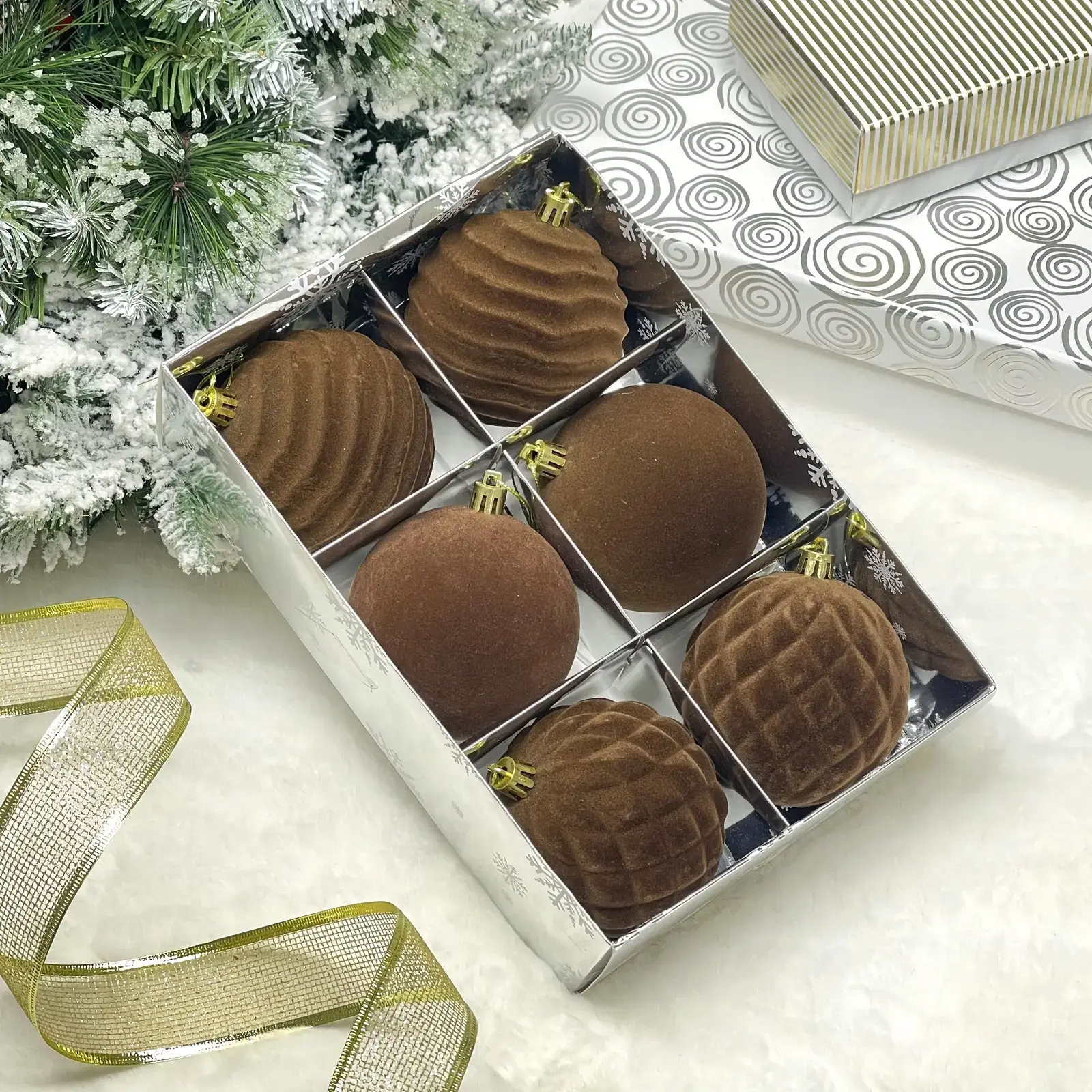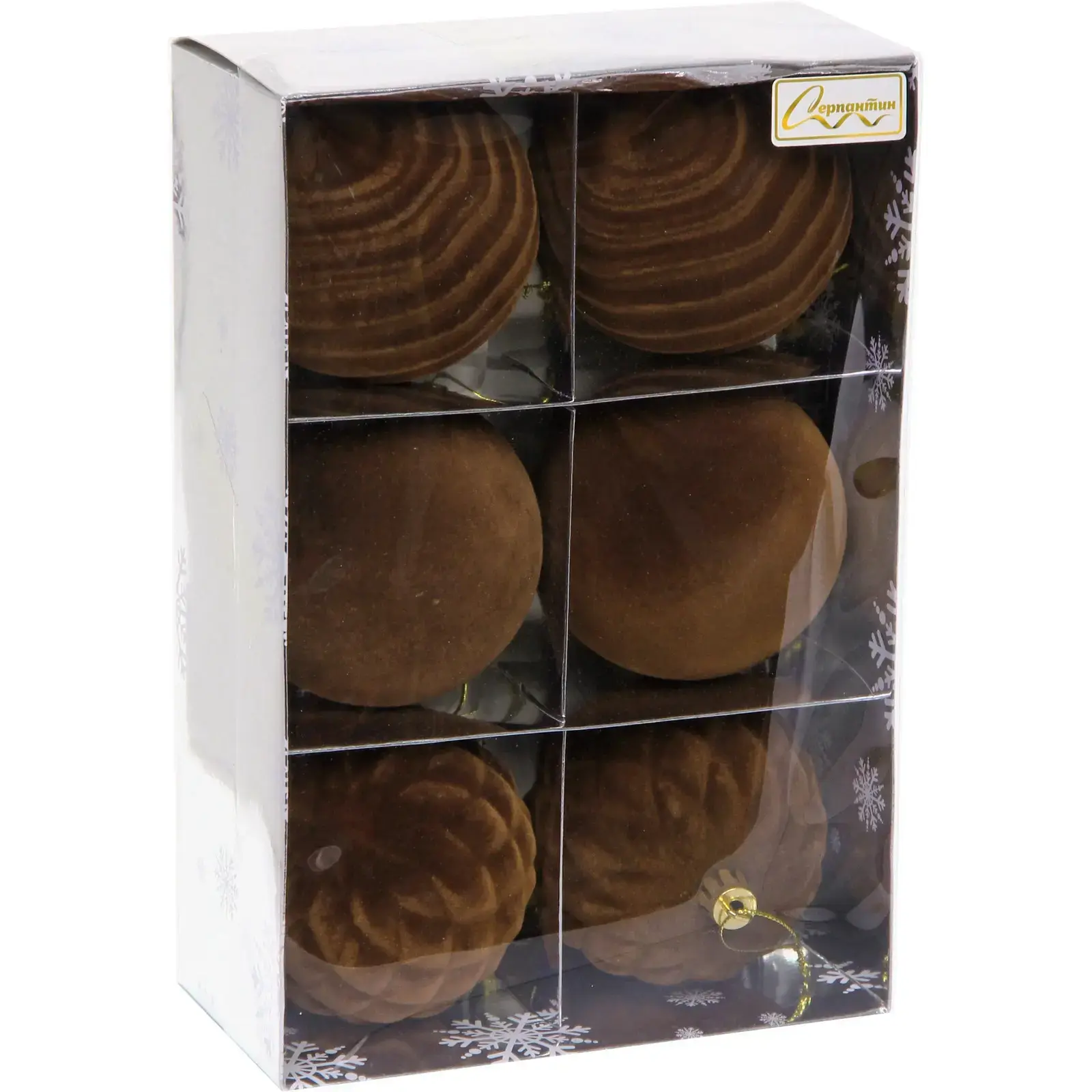 Набор шаров VELOUR «Стильная зима» 8 см (набор 6 шт), Шоколад, пластик, для елки и декорирования