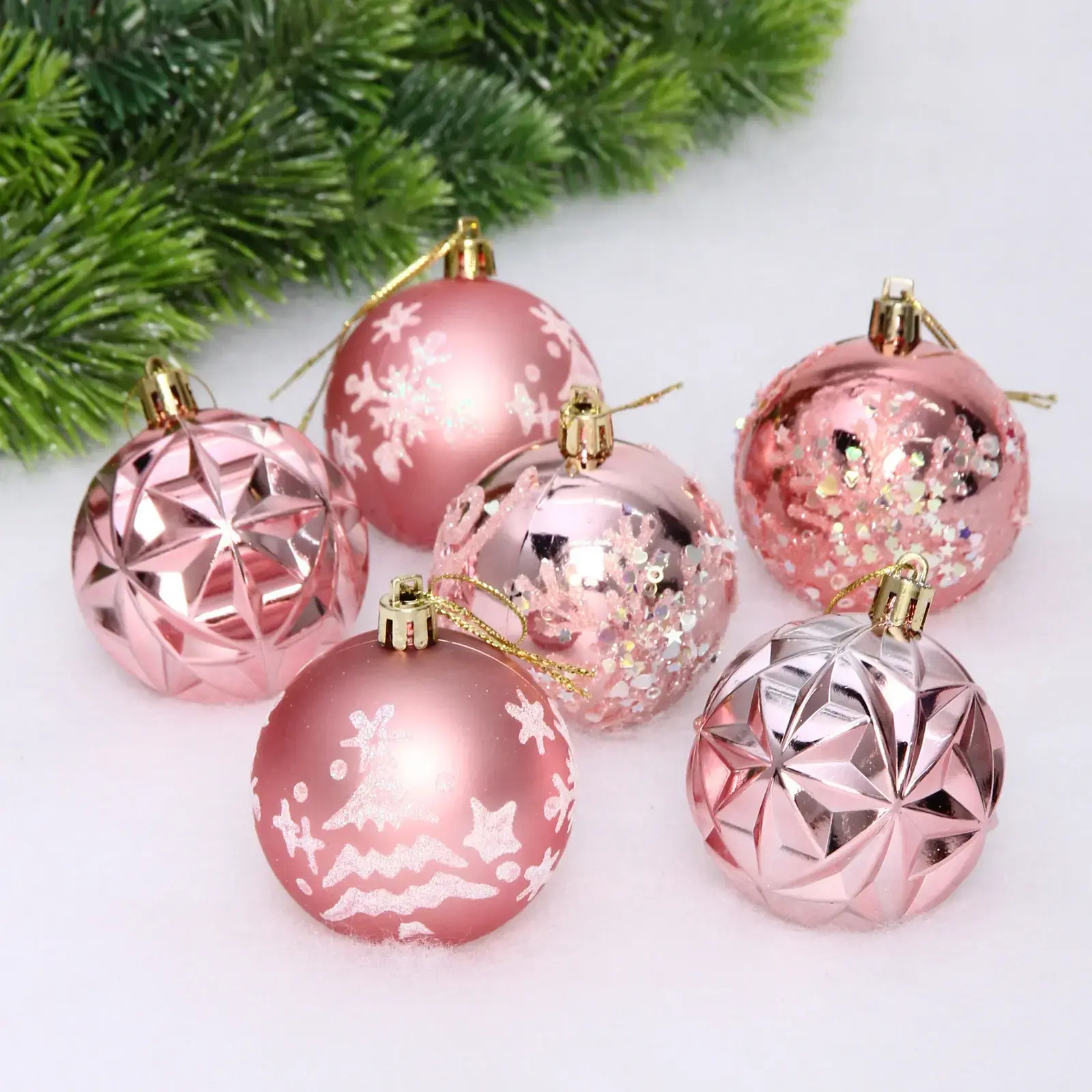 Набор шаров «Вивальди» 6 см (в наборе 6 шт), Розовое золото, пластик, для елки и декорирования
