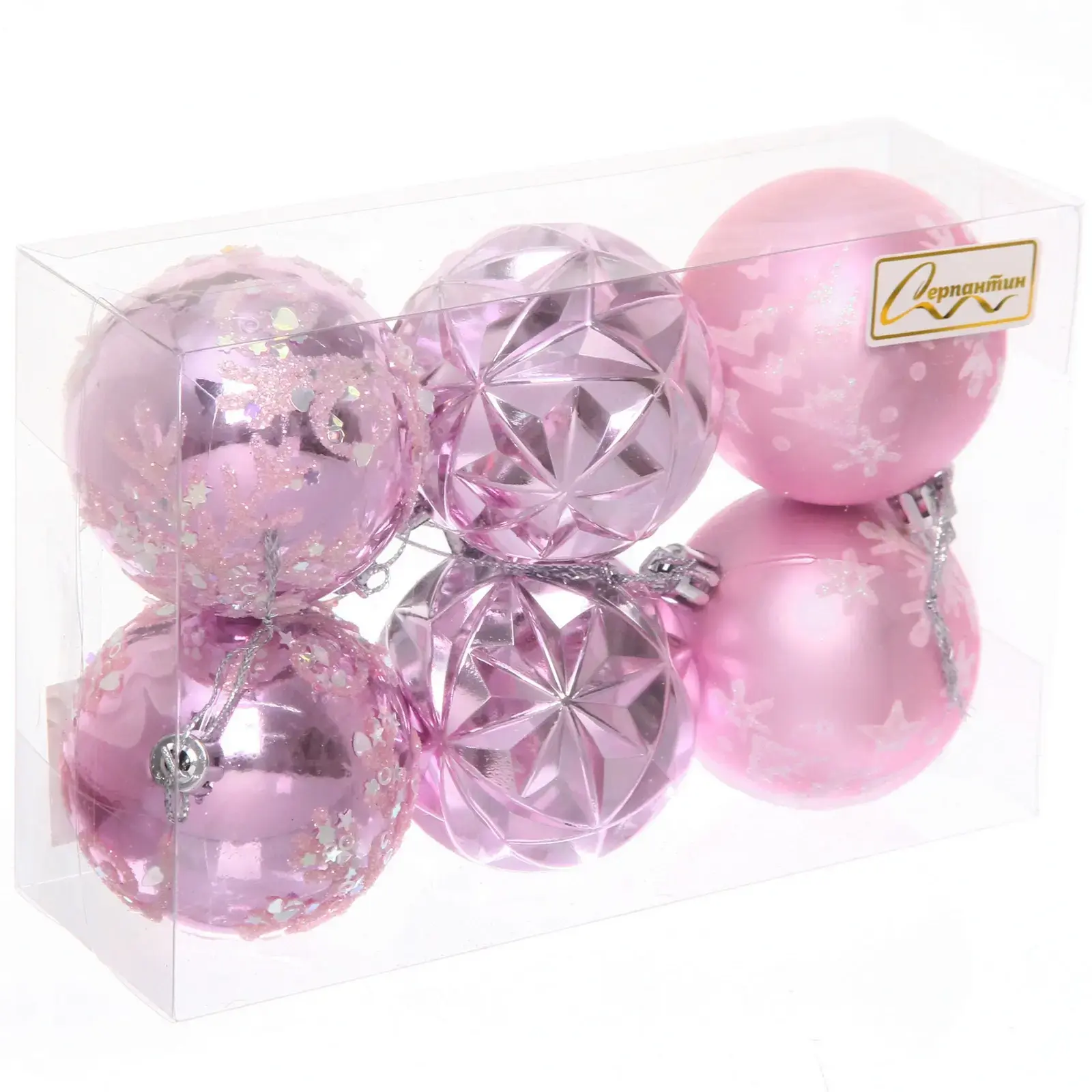 Шары изготовлены из качественного пластика с металлическими верхушками. Размер каждого шара составляет 6 см в диаметре. В набор входит 6 предметов различных оттенков розового цвета.
