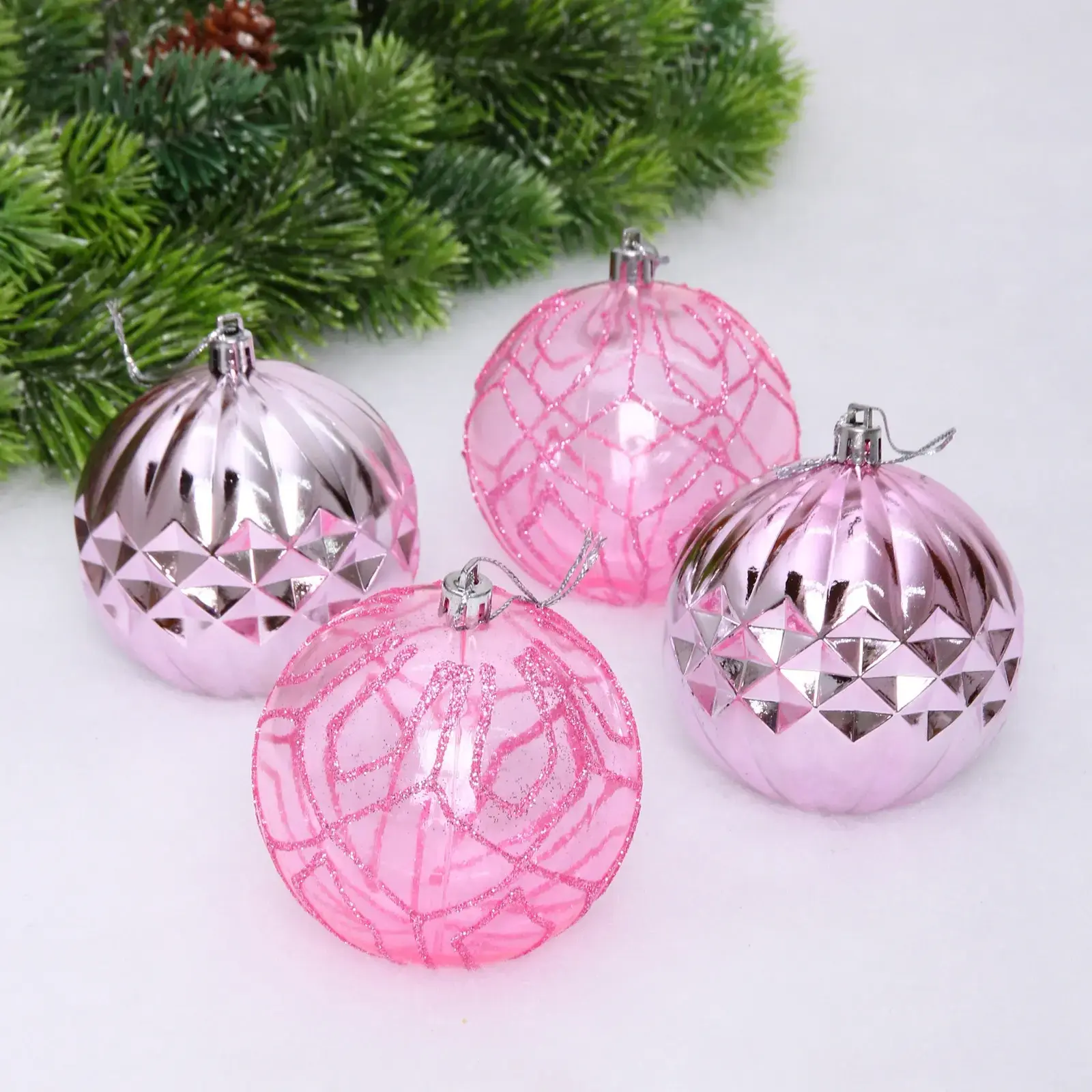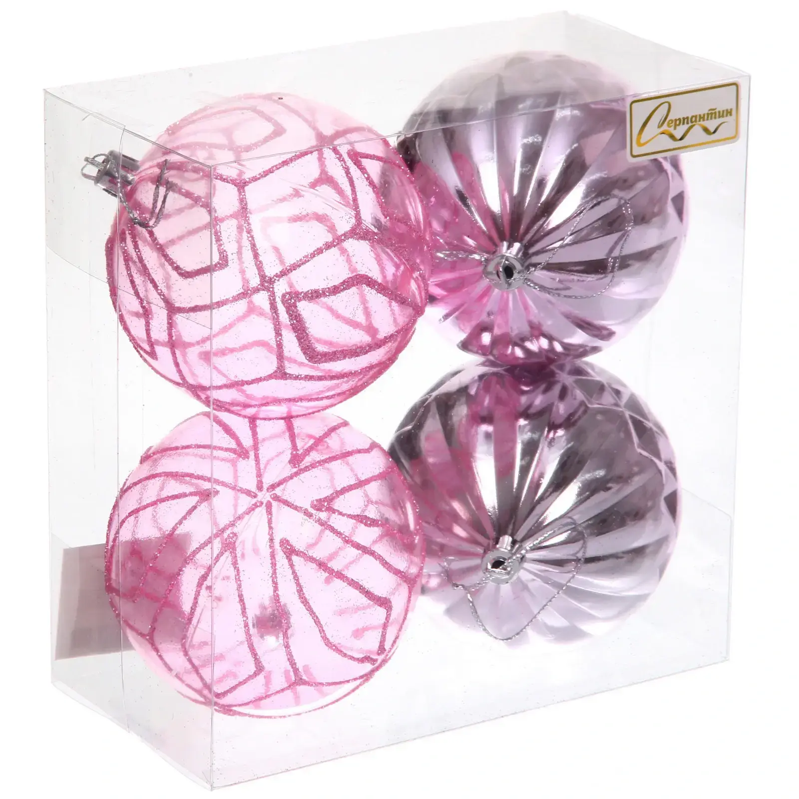 Набор шаров «Волшебные узоры « 8 см (в наборе 4 шт), Розовый, пластик, для елки и декорирования