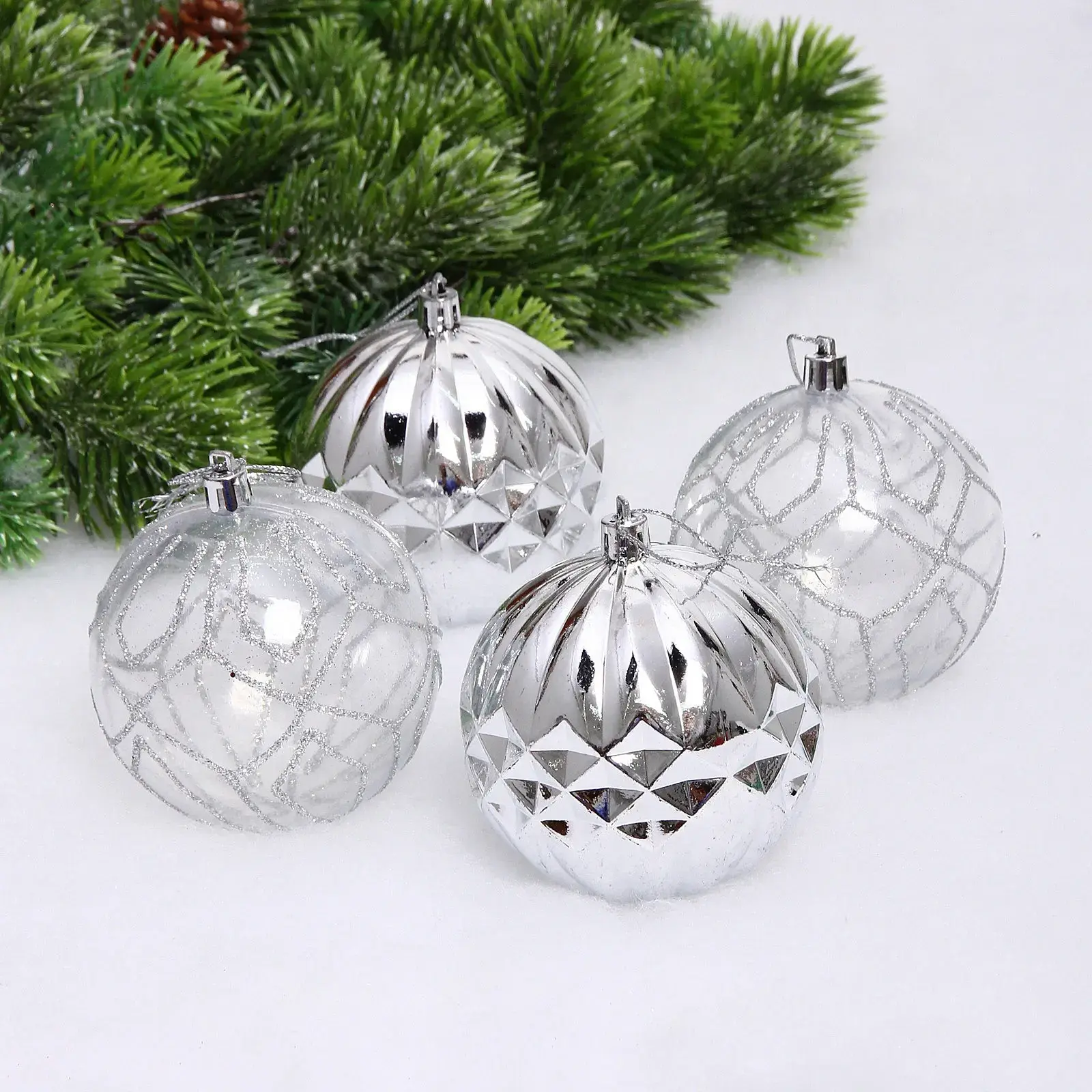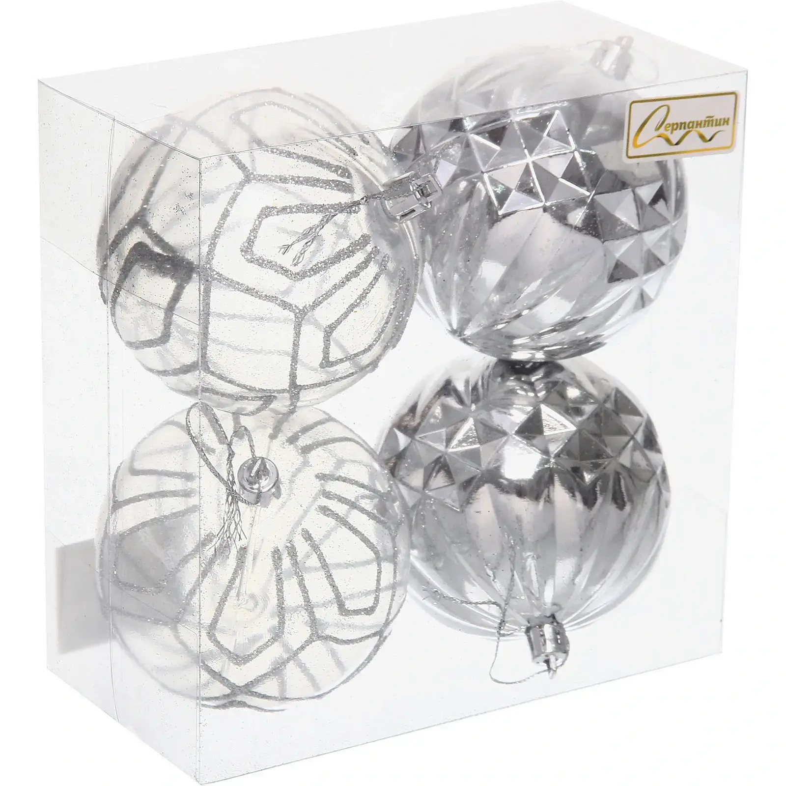 Набор шаров «Волшебные узоры « 8 см (в наборе 4 шт), Серебро, пластик, для елки и декорирования