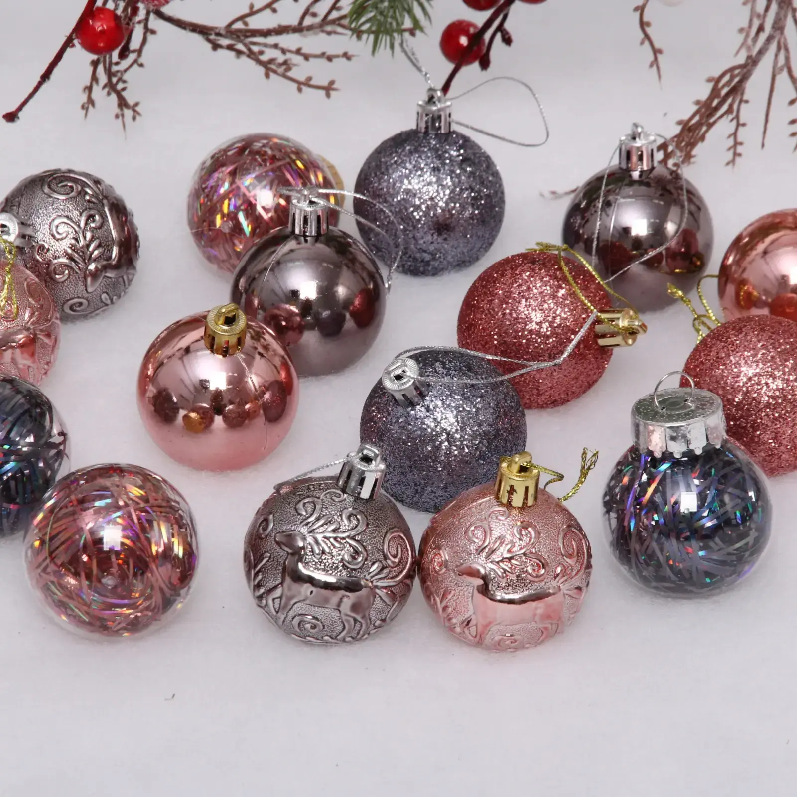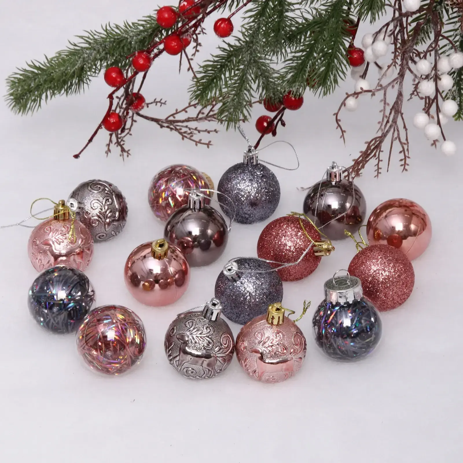Набор шаров «Волшебный вальс» 5 см (16 предметов), графит/роз.золото, пластик, для елки и декорирования