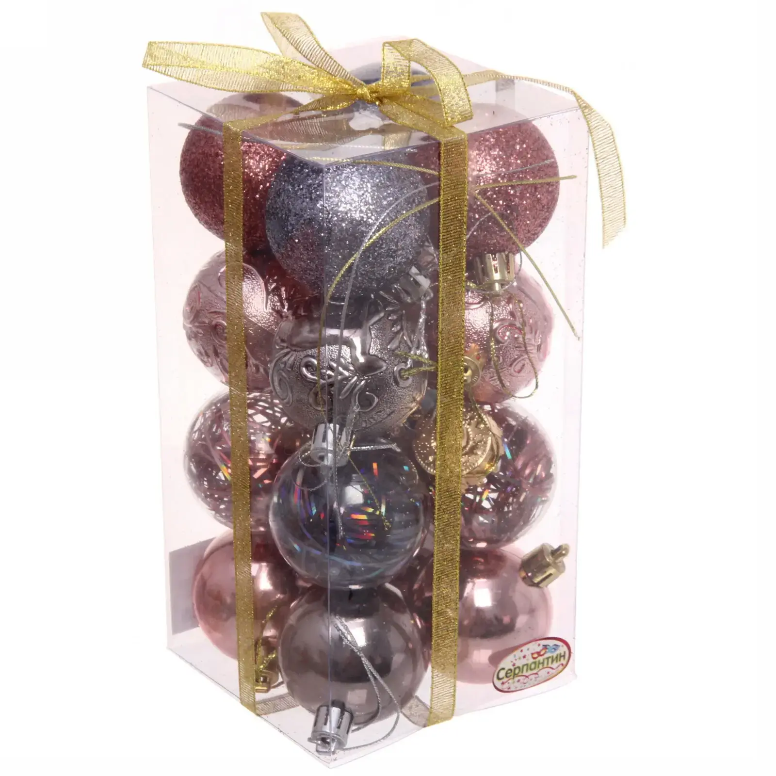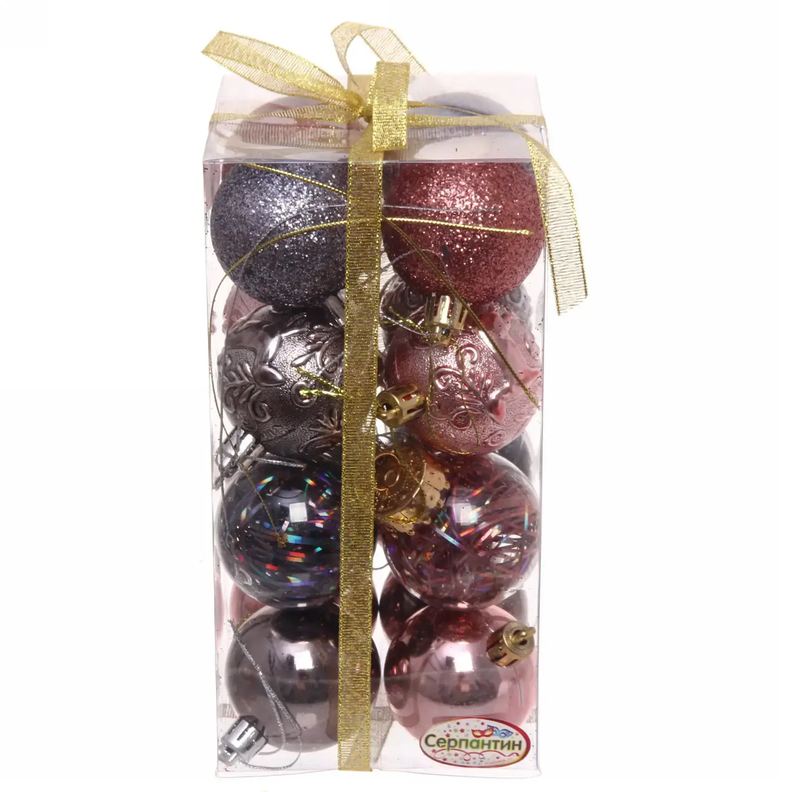 Шары диаметром 5 см выполнены из прочного пластика, что гарантирует их долговечность. Комплект упакован в прозрачную коробку с золотистой лентой, что делает его отличным подарком для близких.