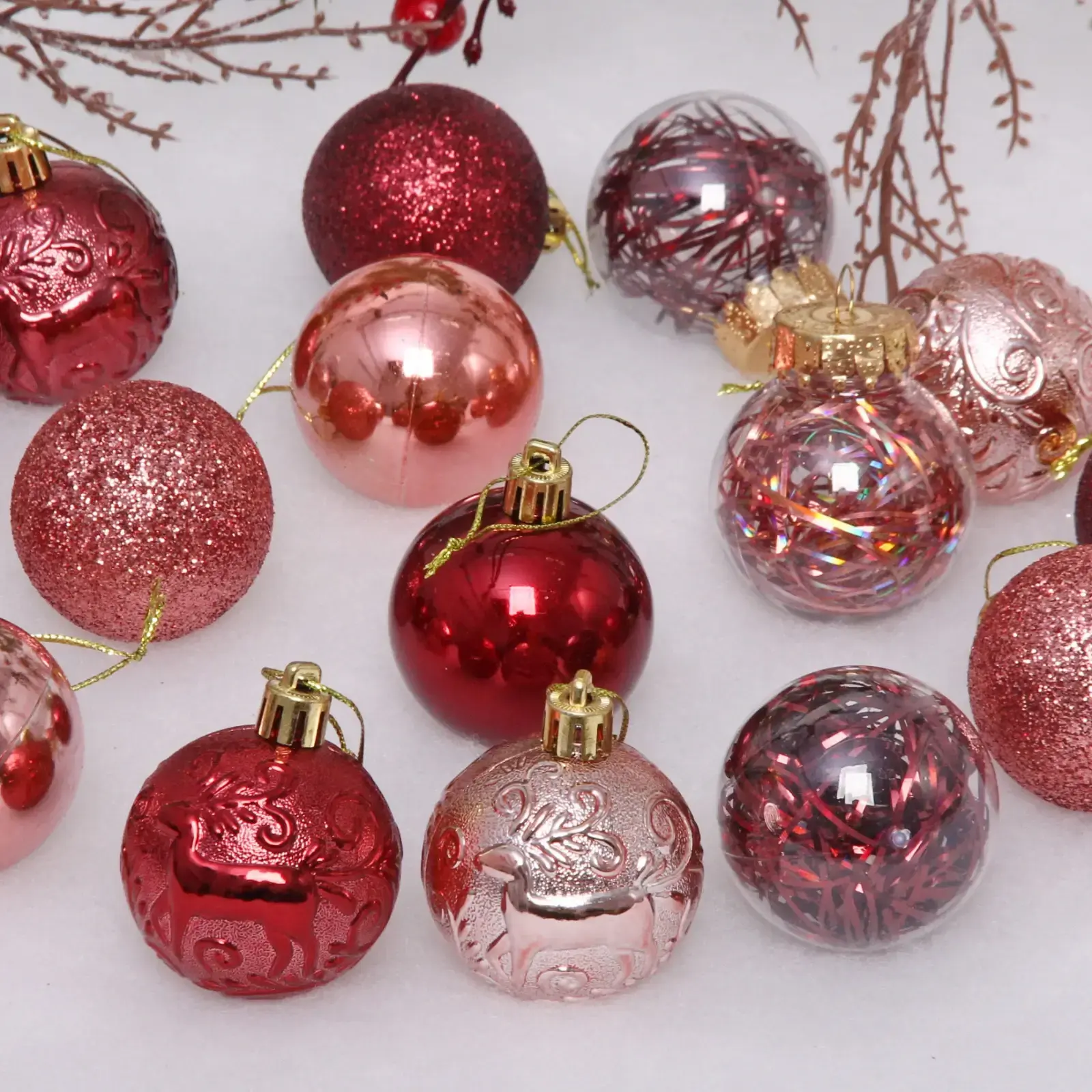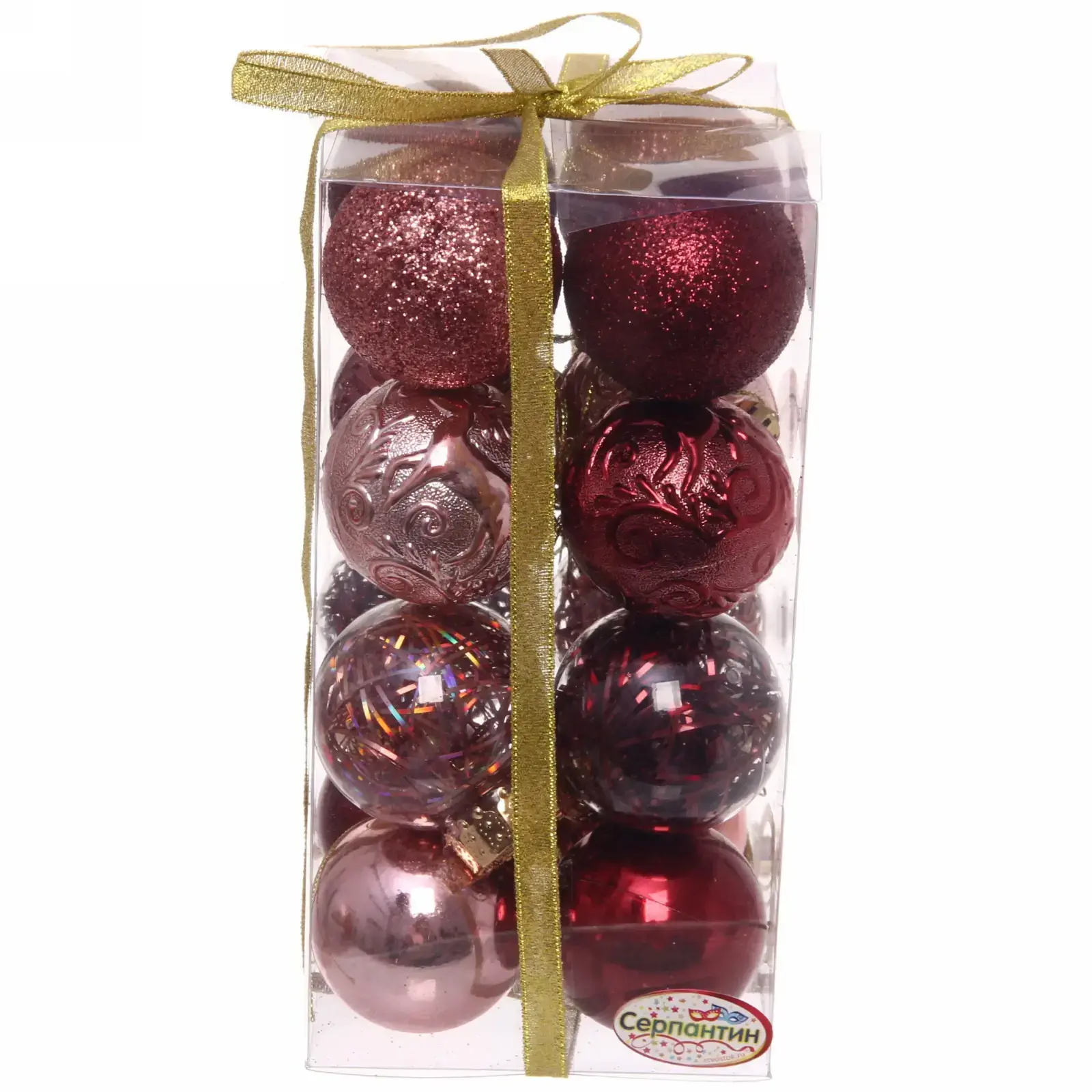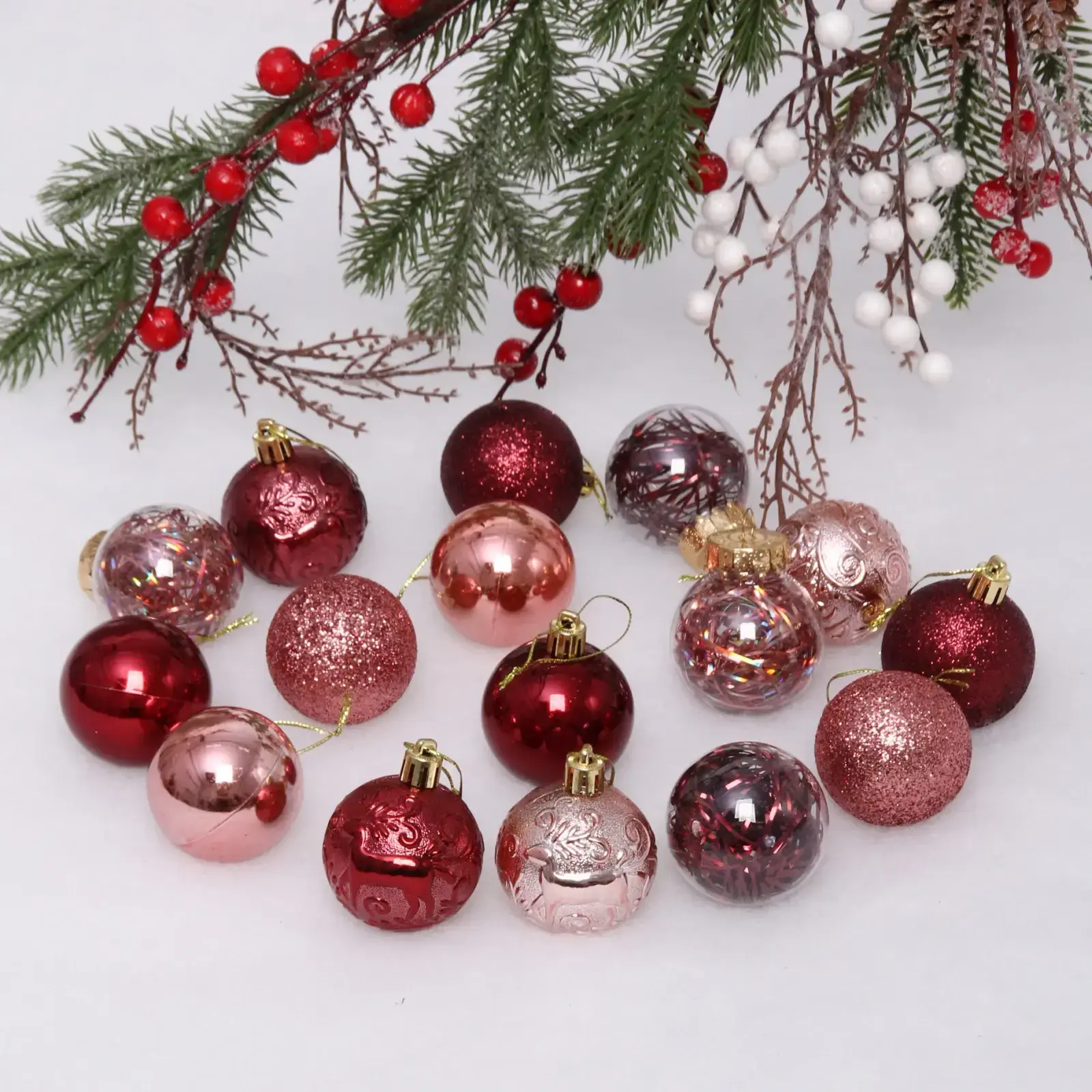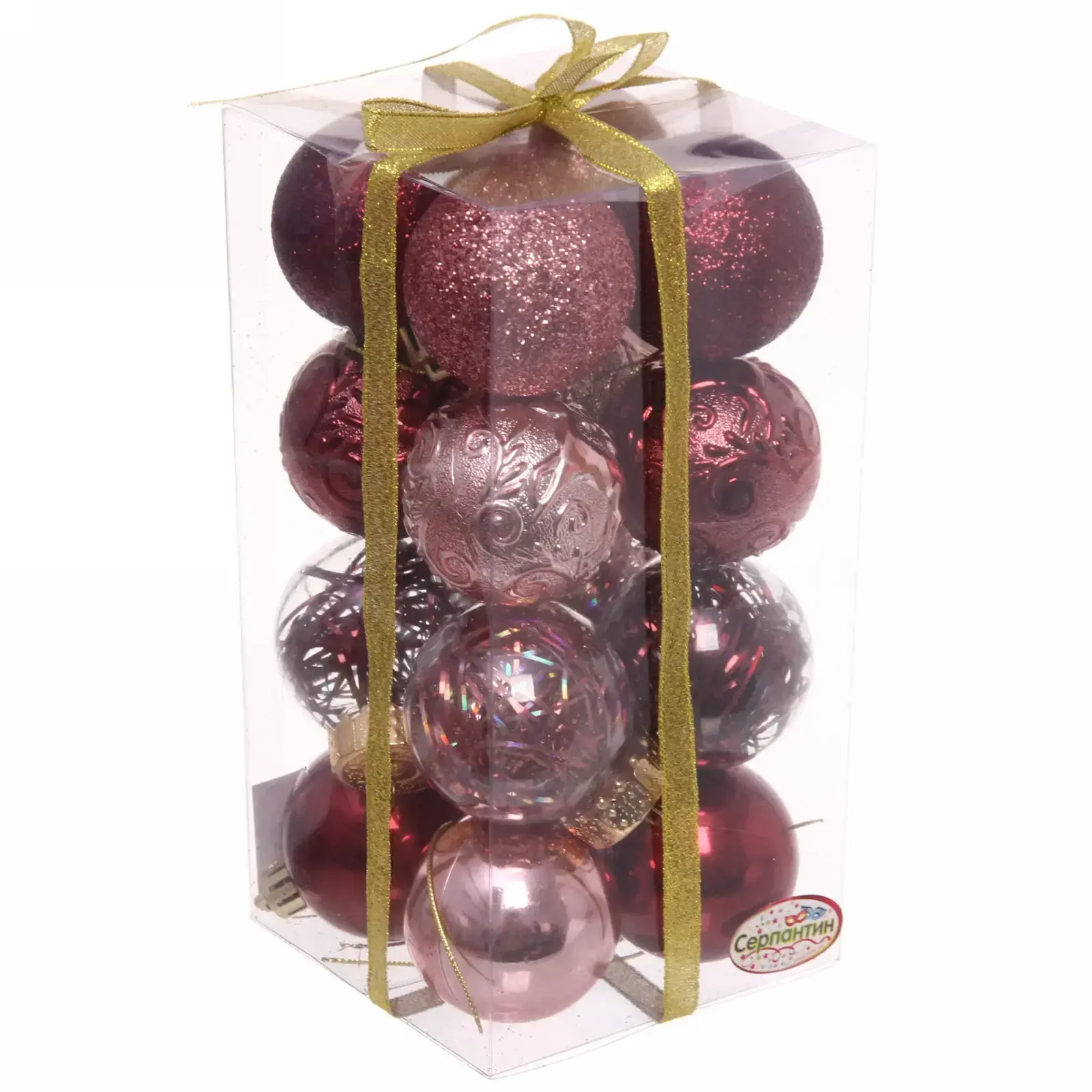 Набор шаров «Волшебный вальс» 5 см (16 предметов), рубин/роз.золото, пластик, для елки и декорирования