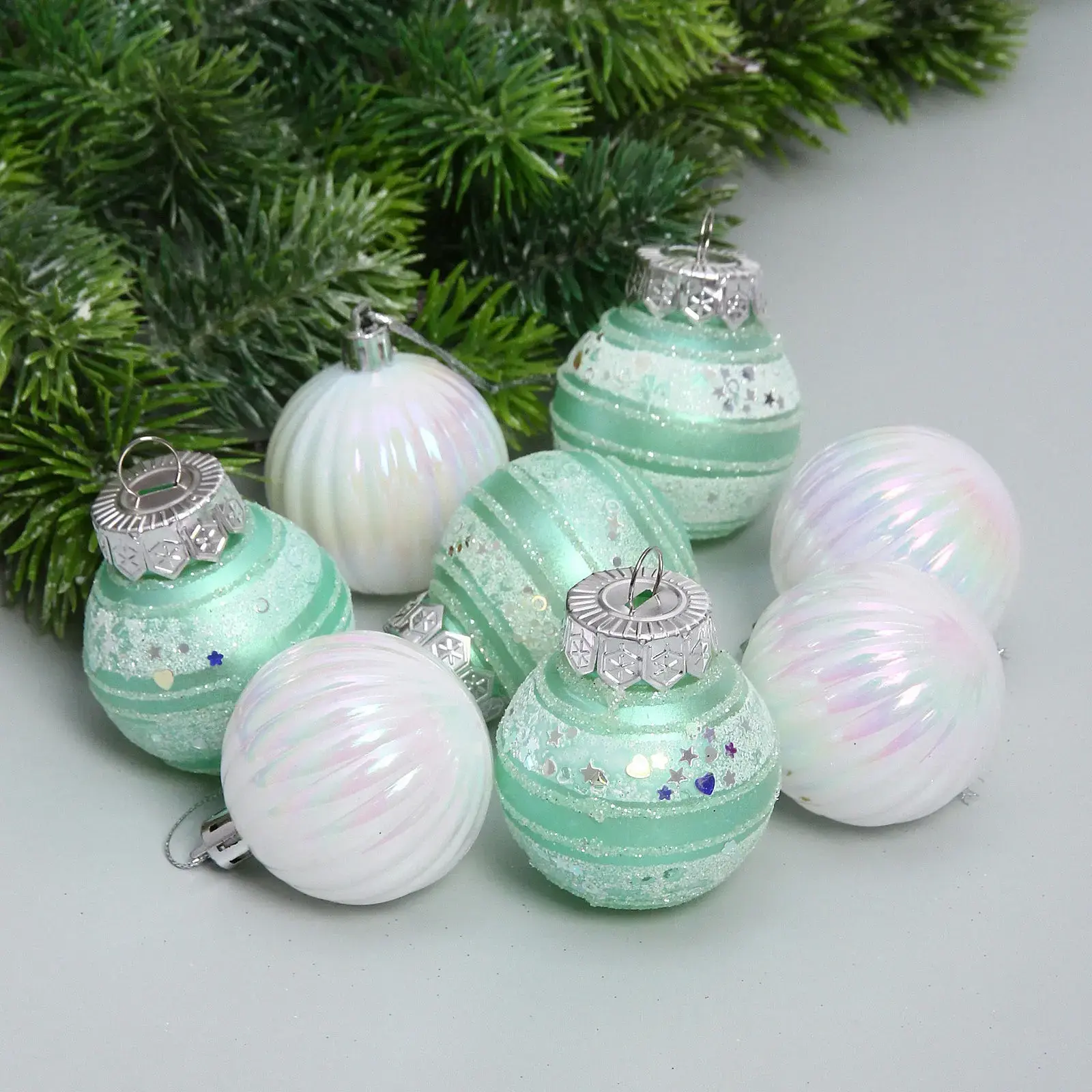 Набор шаров «Восхищение» 5 см (в наборе 8 шт), Белый, нежно-зеленый, пластик, для елки и декорирования
