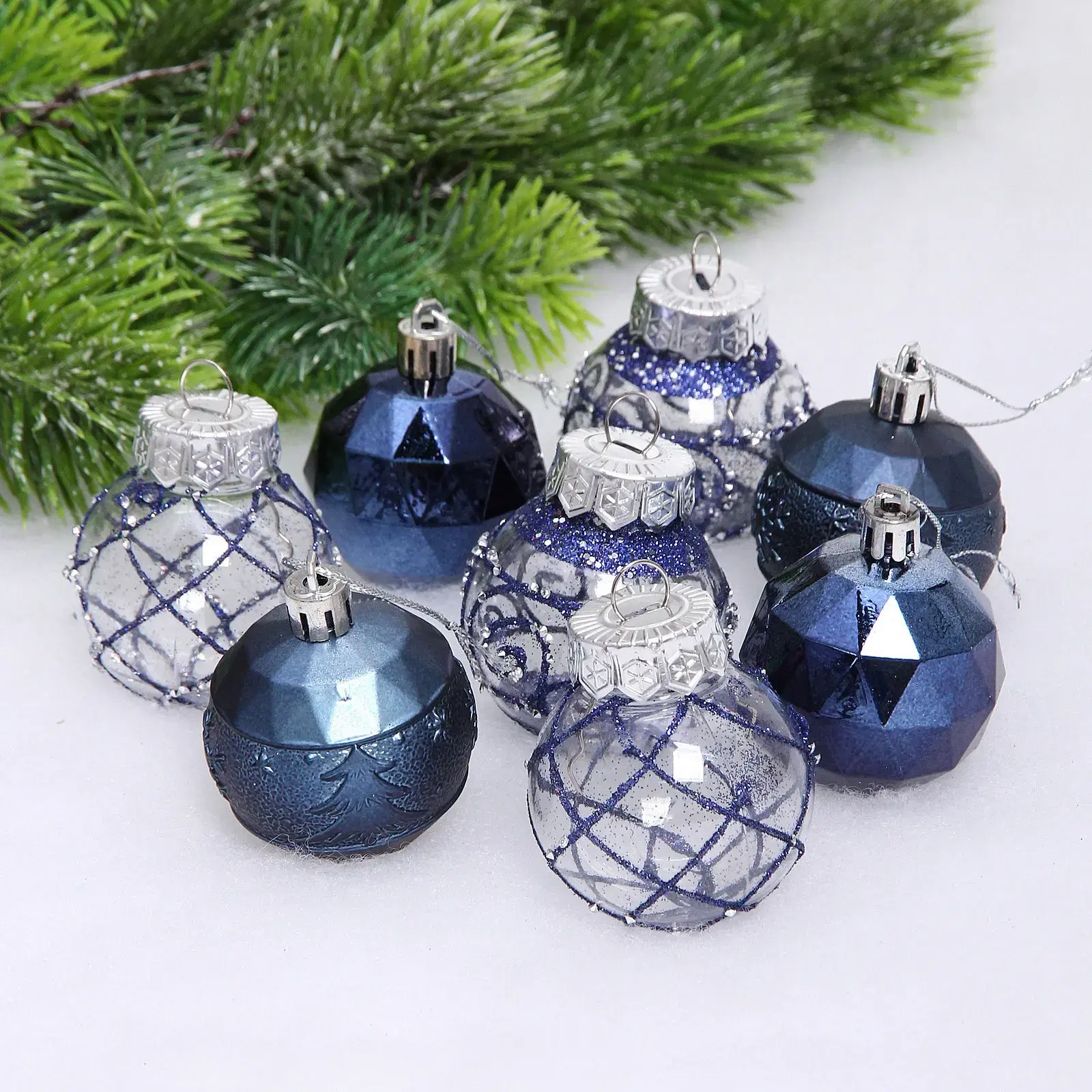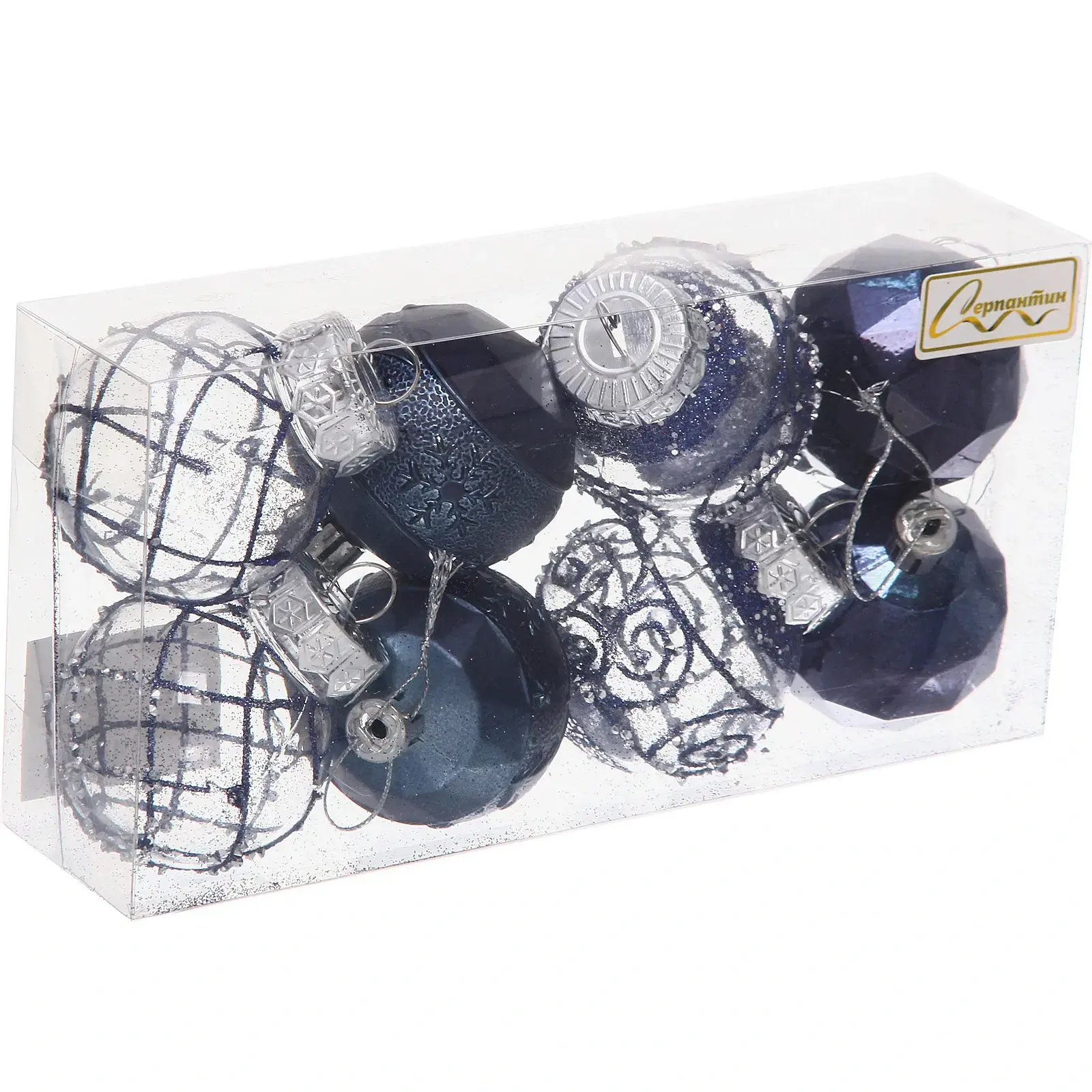 Праздничный набор из 8 стильных шаров "Восторг" станет безупречным выбором для украшения вашей елки. Изысканные оттенки сапфира и серебра добавят волшебного сияния в ваш дом.