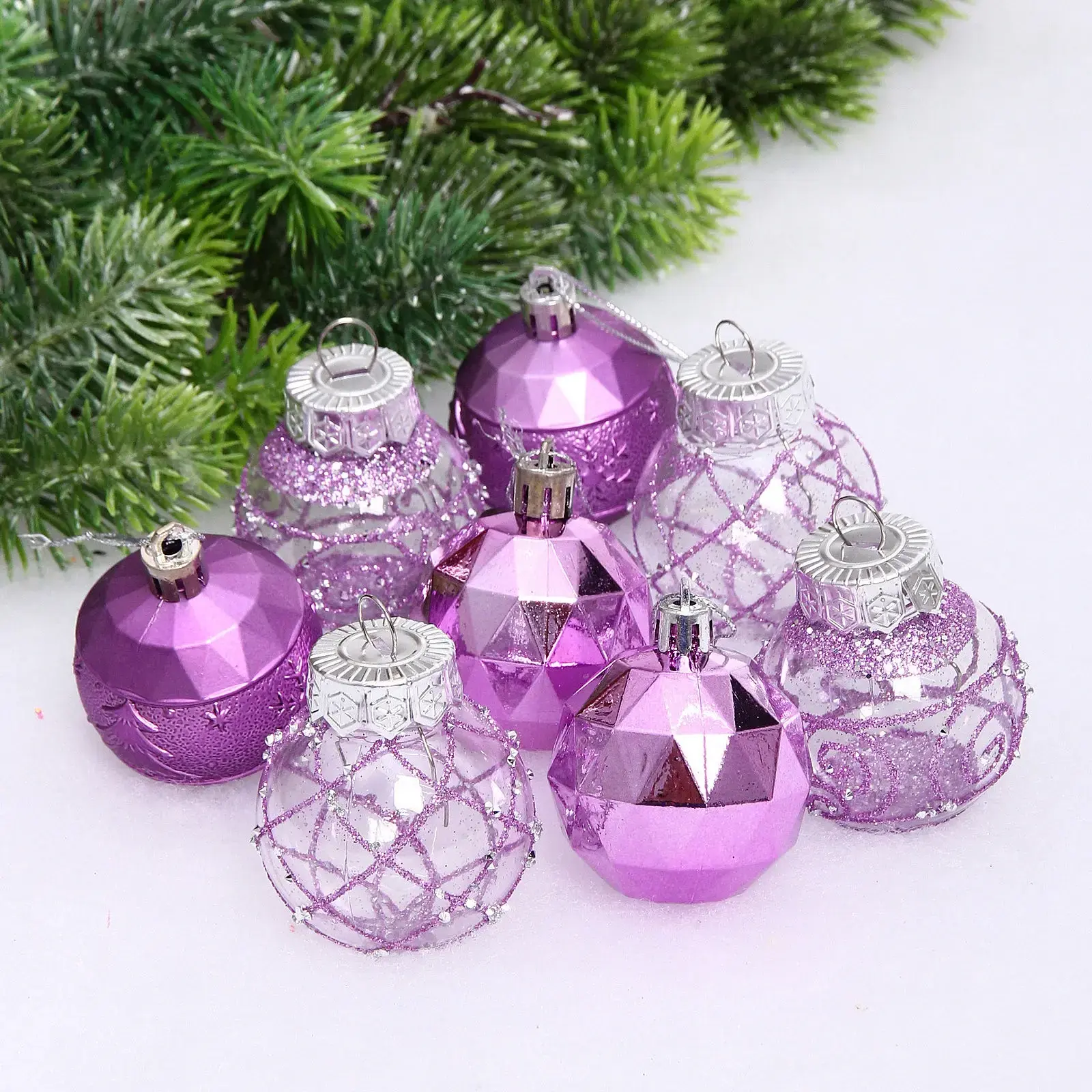 Набор шаров «Восторг» 5 см (в наборе 8 шт), Сиреневый, пластик, для елки и декорирования
