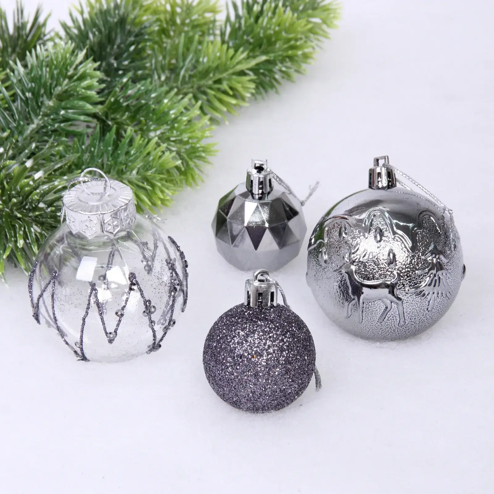 Все шары аккуратно упакованы в прозрачную прямоугольную коробку с декоративной лентой. Такой набор удобно дарить и использовать не один сезон — пластик не выцветает и не трескается. Украсьте ваш дом ярко, стильно и без усилий — наслаждайтесь праздником и уютом каждый новый год!