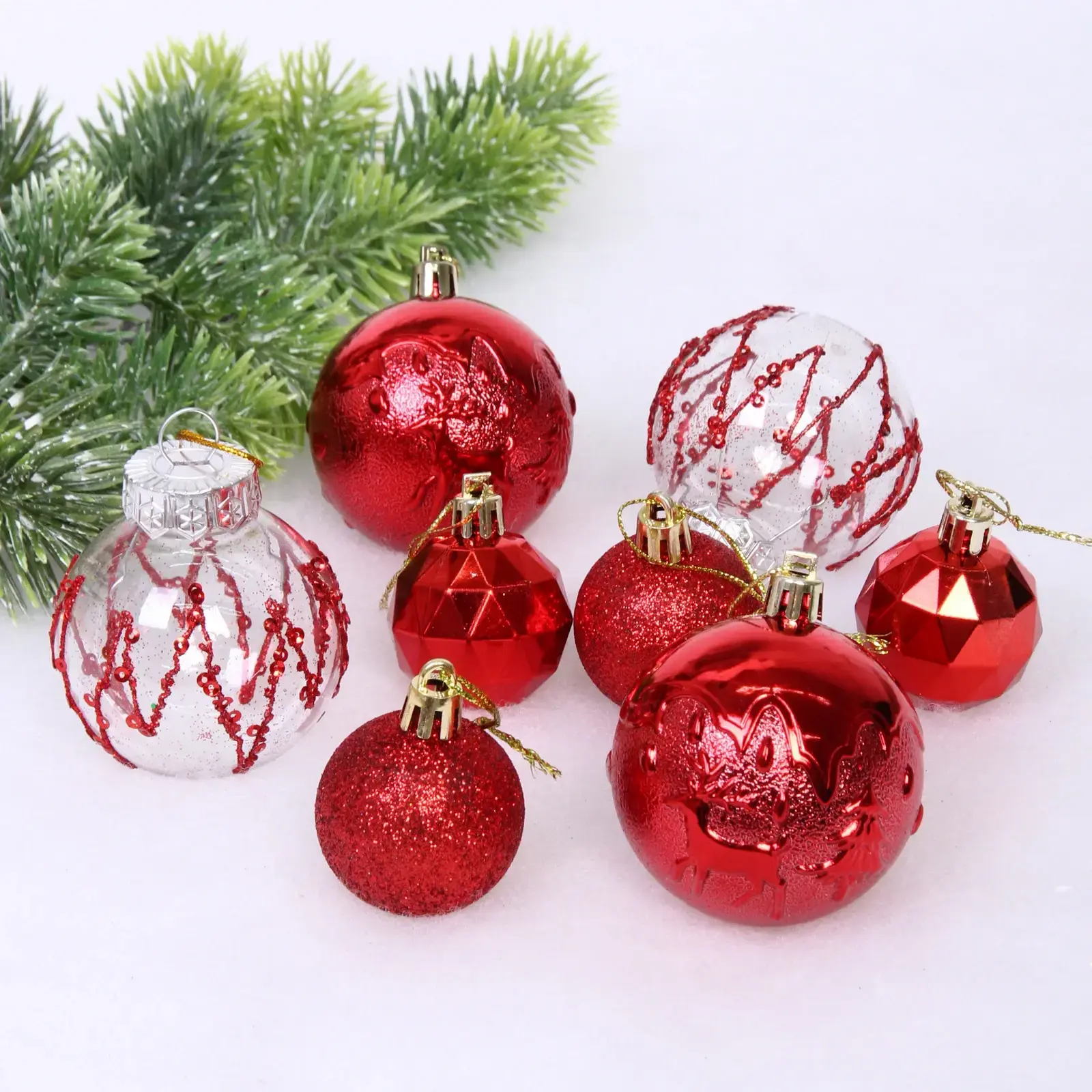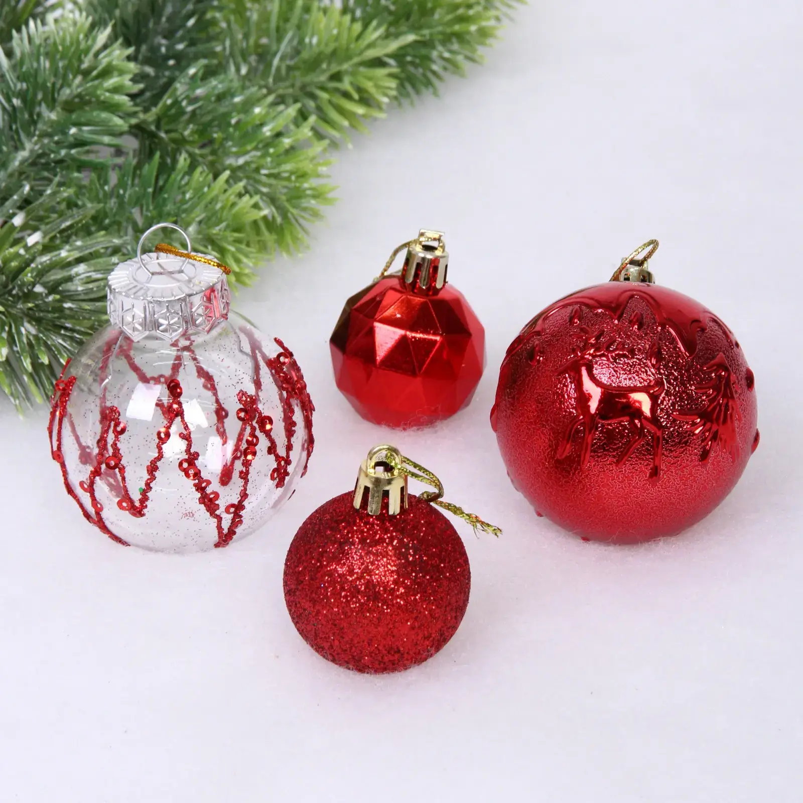Этот набор шаров станет идеальным дополнением к вашему новогоднему декору, придавая вашему дому атмосферу уюта и праздника. Яркие красные шары различных форм и текстур добавят изысканности и стиля вашей ёлке или праздничному интерьеру.