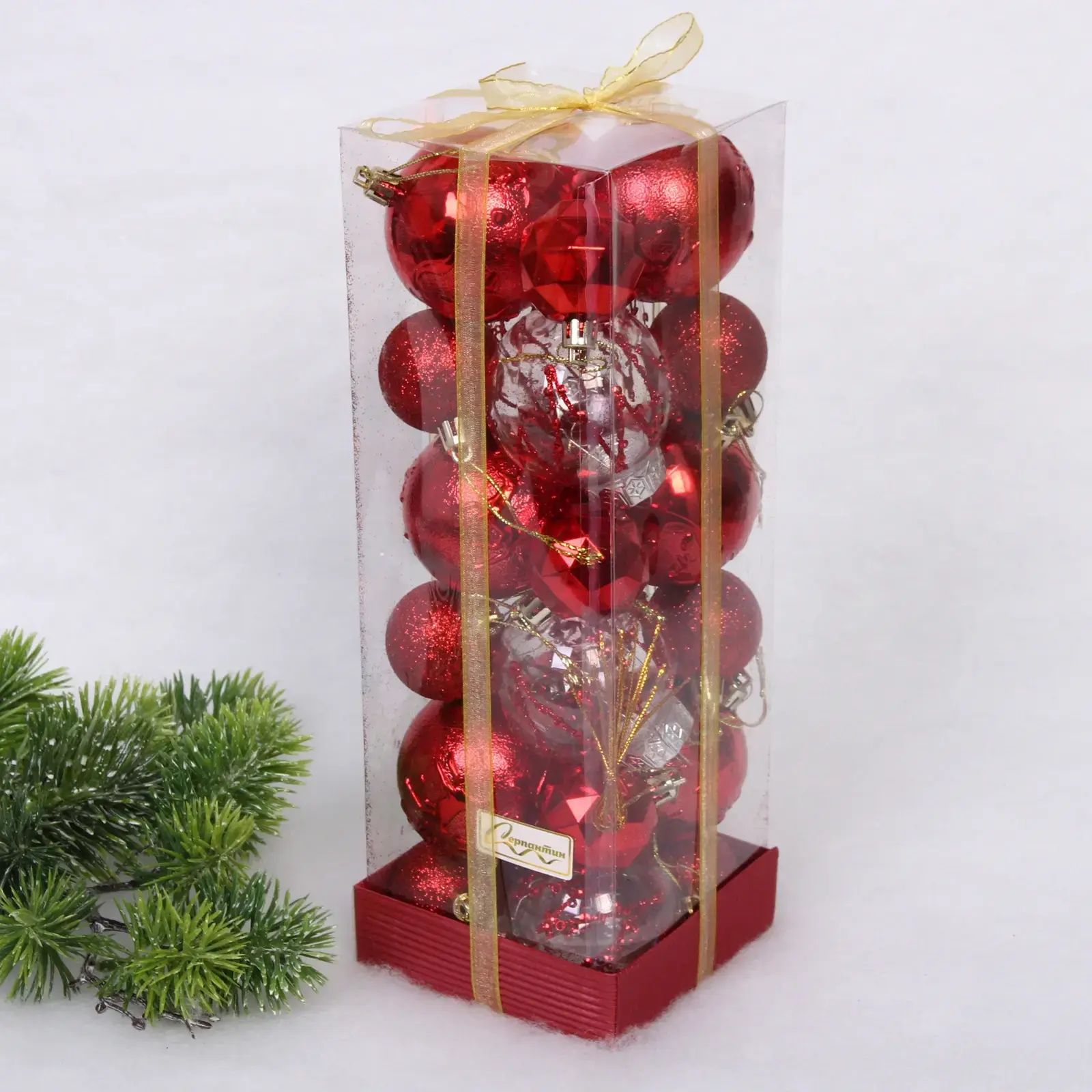 Размеры шаров составляют 6 см и 4 см, что делает их универсальными для любого стиля оформления. Упаковка выполнена из прозрачного материала и оформлена золотой лентой, что добавляет элегантности. Набор станет отличным подарком для друзей и близких, а также прекрасным способом украсить ваш дом в праздничный сезон.
