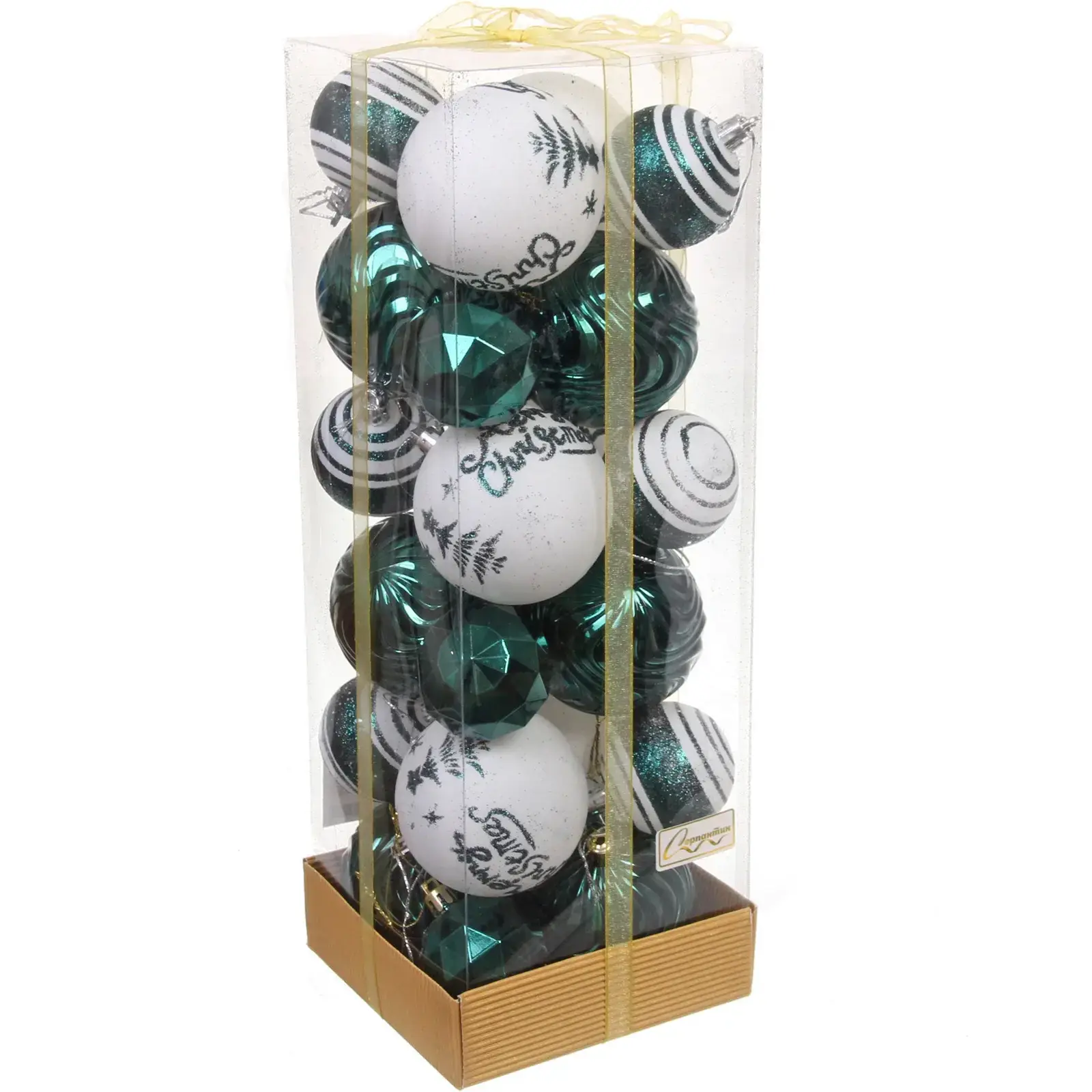 Набор состоит из 24 предметов, что позволяет вам проявить креативность в оформлении. Шары легко крепятся на елку благодаря металлическим креплениям, а их разнообразные формы и текстуры делают каждую композицию уникальной. Подходят для использования как в домашних условиях, так и в общественных местах, таких как кафе и магазины, создавая атмосферу праздника для всех.