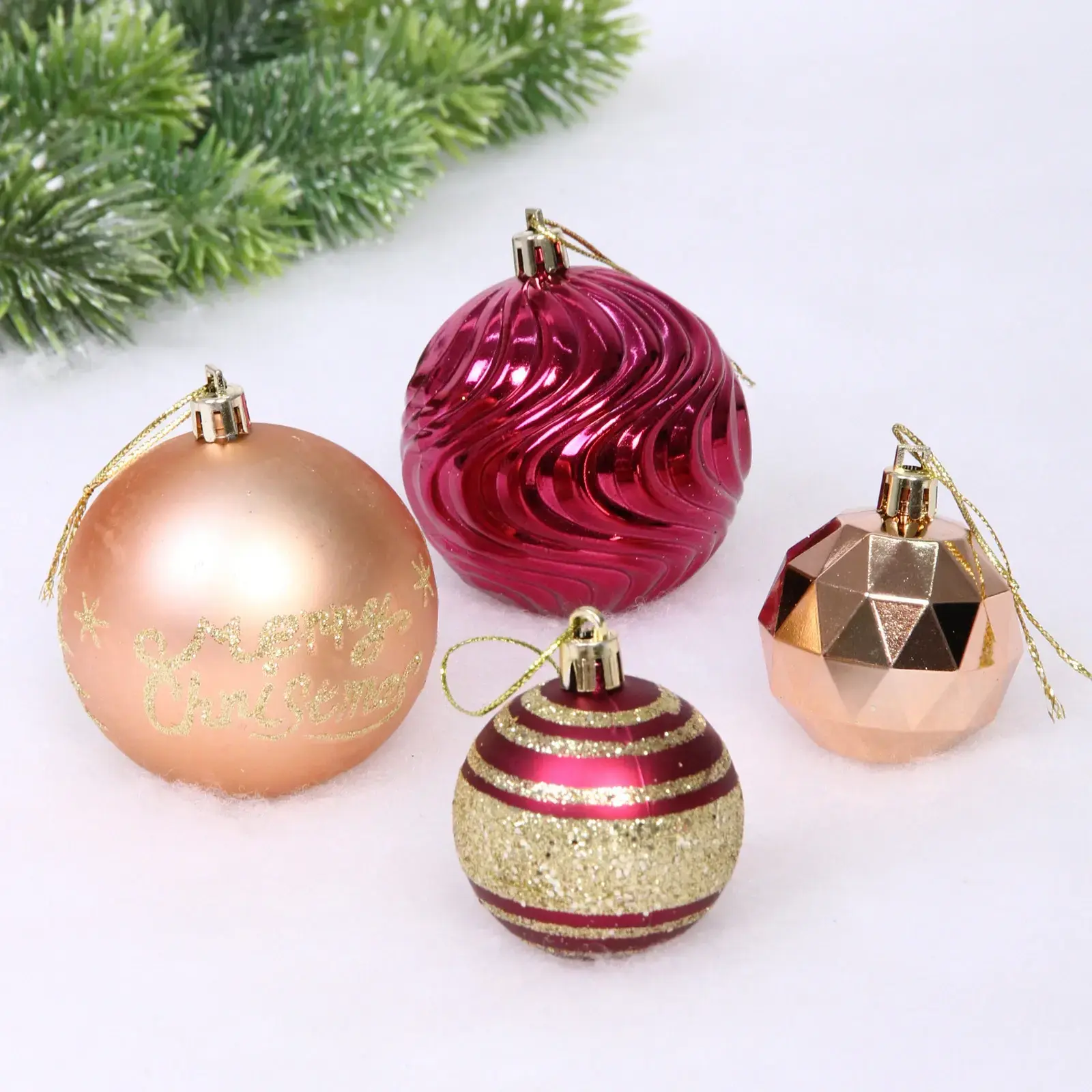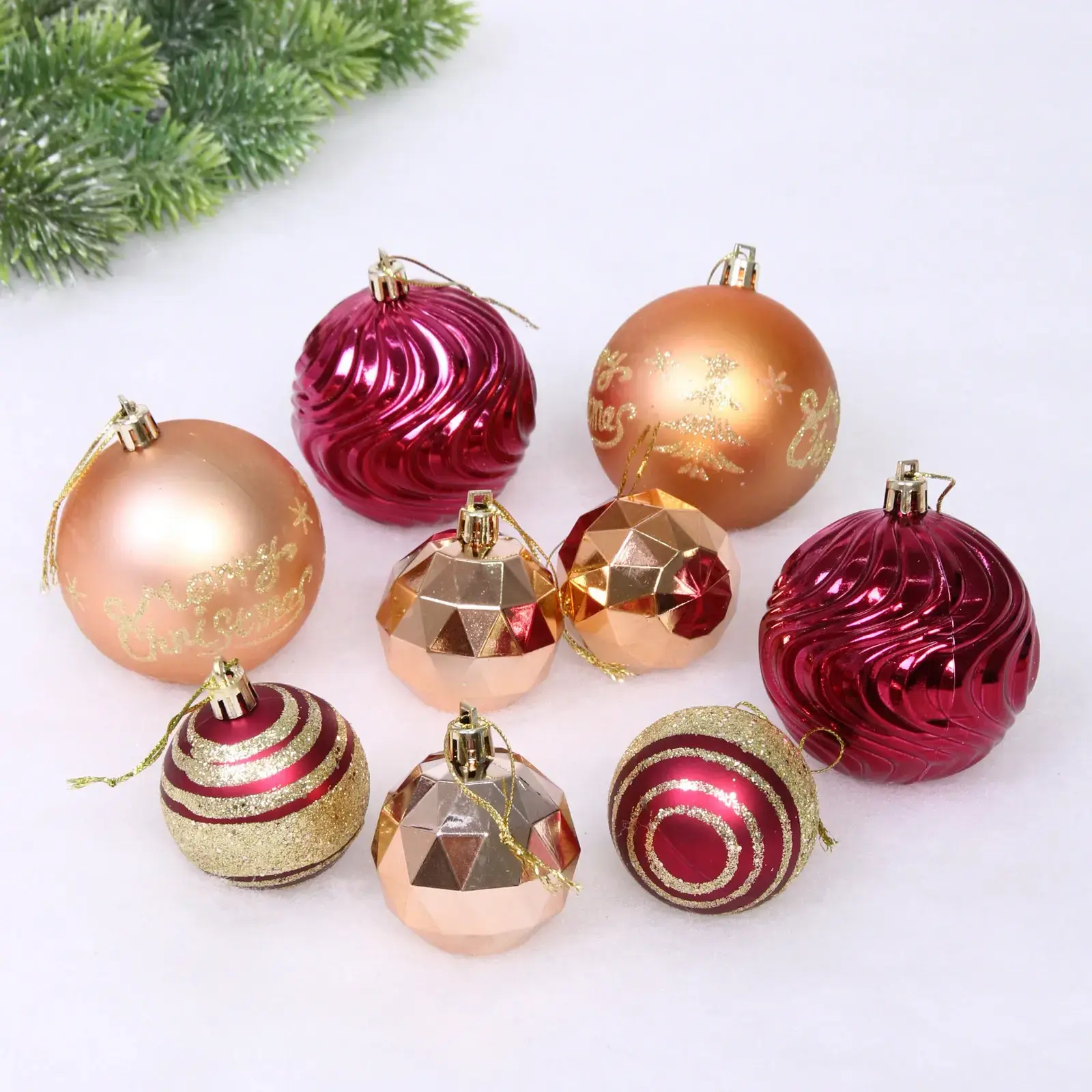 Этот набор шаров станет идеальным украшением для вашей новогодней елки, добавляя атмосферу уюта и праздника. Сочетание рубинового и шампань цветов придаст вашему интерьеру элегантность и стиль. Каждый шарик выполнен из прочного пластика, что гарантирует долговечность и безопасность использования.