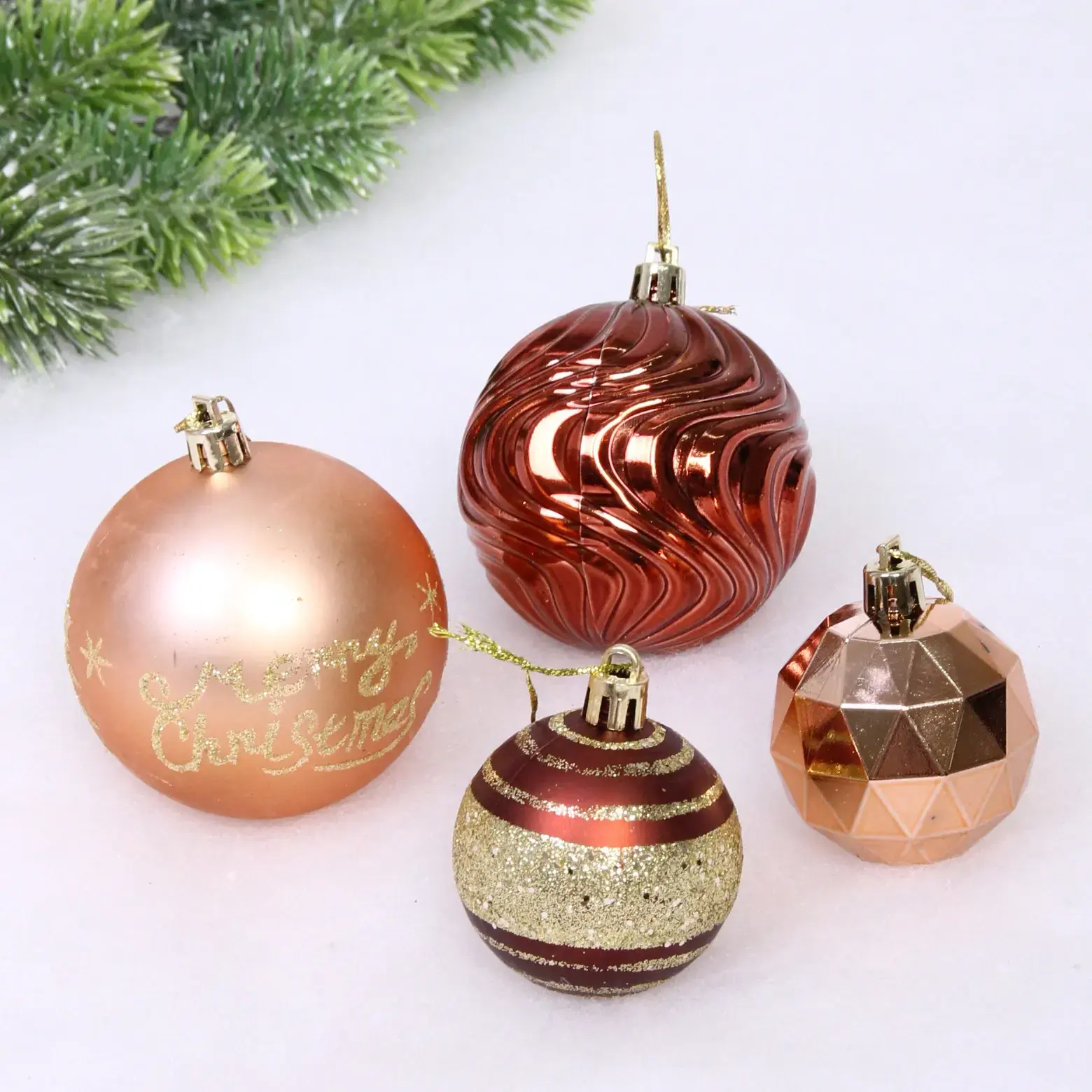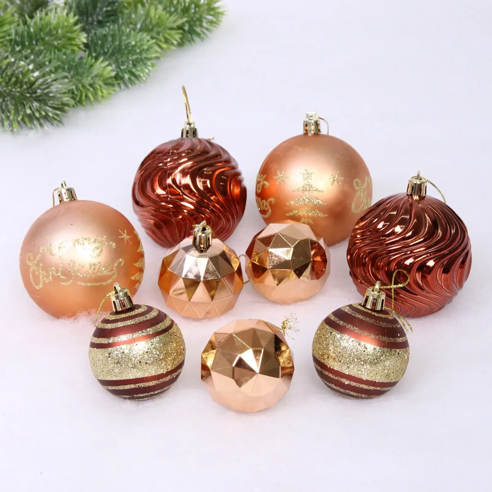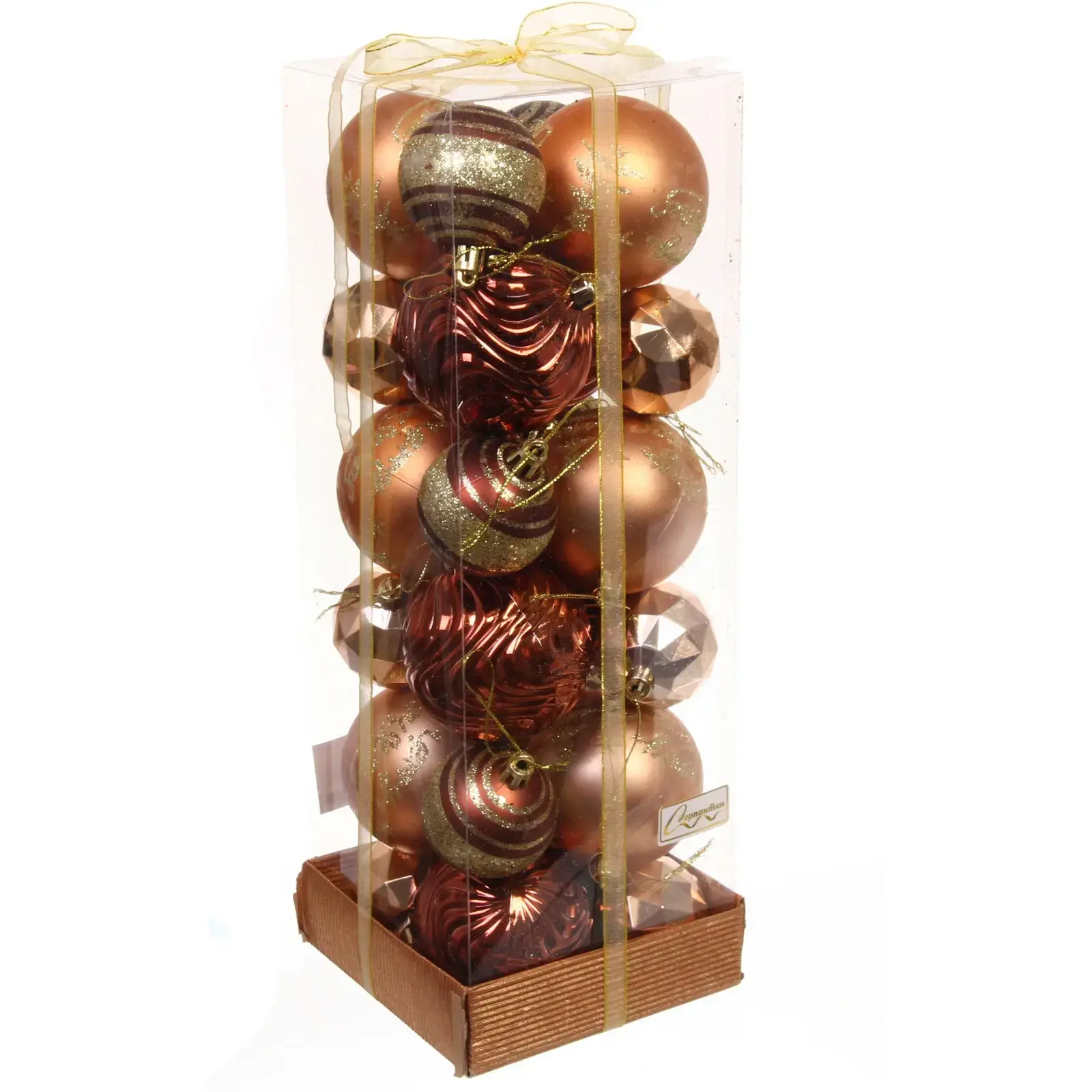 Набор состоит из 24 шаров различных форм и размеров: 7 см и 5 см, что позволяет вам создать уникальные композиции. Эти игрушки идеально подходят для украшения новогодней ёлки, а также могут использоваться для декорирования интерьера, подарков или праздничных мероприятий.