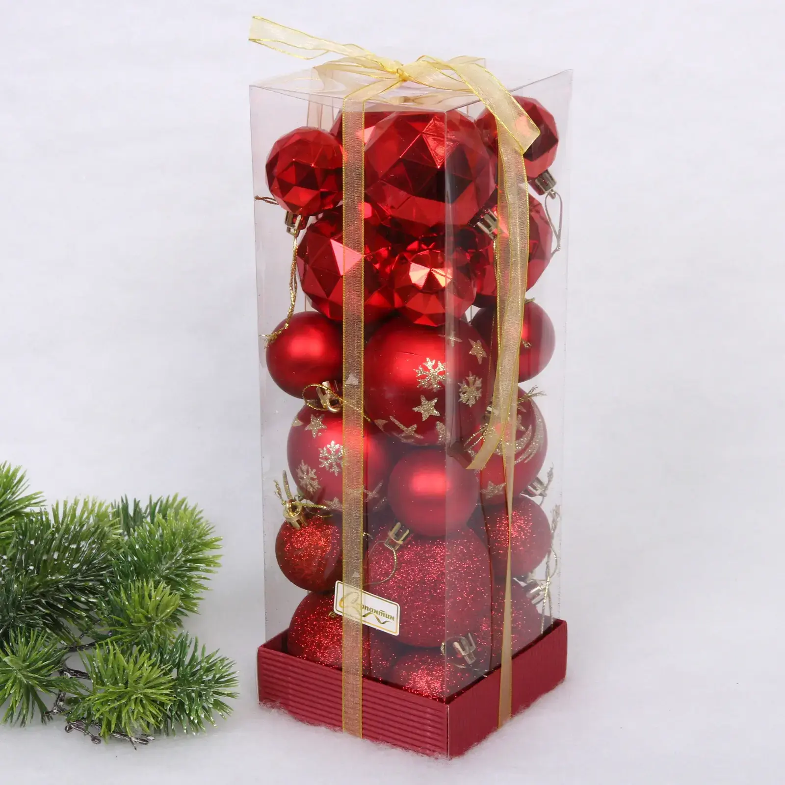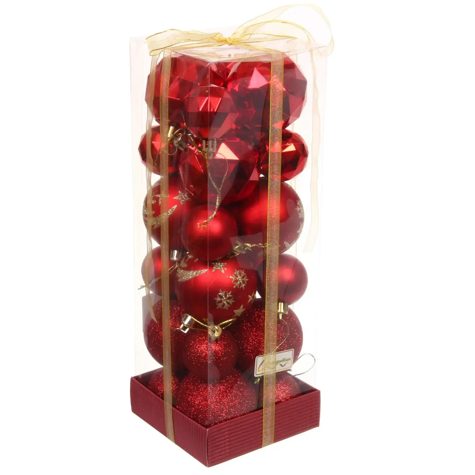 Каждый шар в наборе выполнен из прочного пластика, что гарантирует их долговечность. Размеры шаров: 6 см и 4 см, что позволяет легко комбинировать их в различных композициях. Набор упакован в стильную прозрачную коробку, что делает его удобным для хранения и транспортировки.
