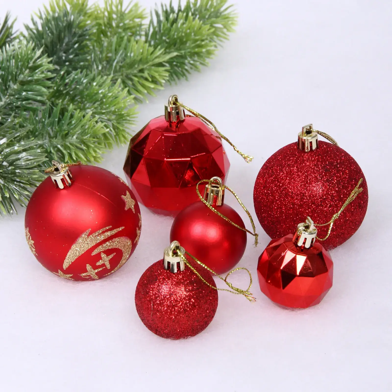 Этот набор новогодних шаров станет идеальным украшением для вашей ёлки, добавляя атмосферу уюта и праздника. Яркие красные шары с блестящей поверхностью и уникальными текстурами привлекут внимание и создадут незабываемую атмосферу. Каждый шар в наборе выполнен из качественного пластика, что обеспечивает долговечность и надежность в использовании.