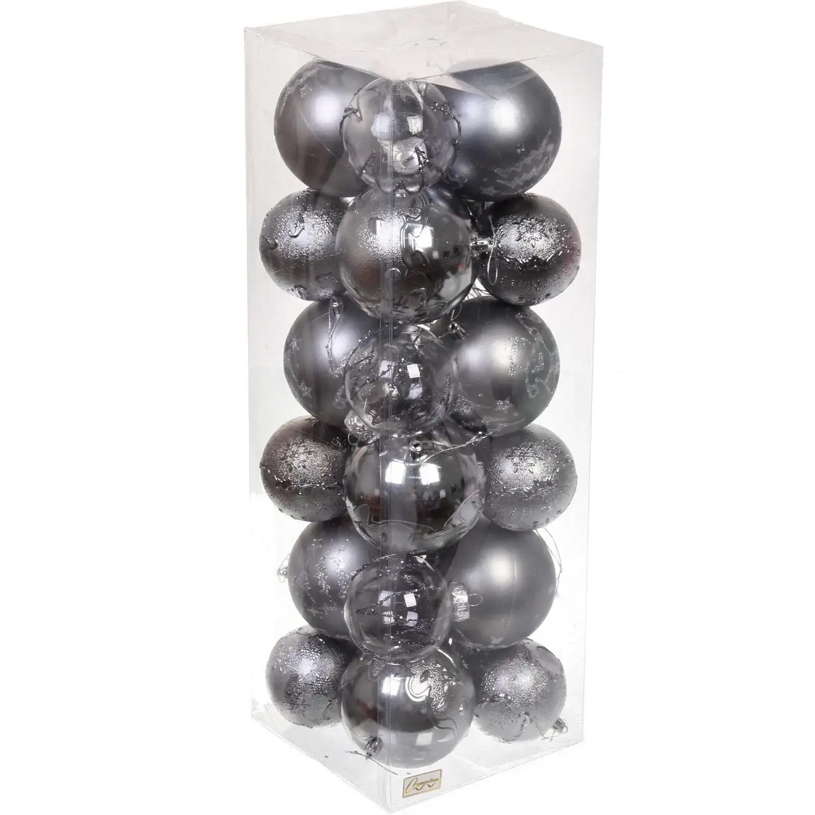 Набор включает 24 шара различных размеров: 8 см и 10 см, что позволяет создавать интересные композиции и акценты на вашей елке. Эти шары идеально подходят для украшения как домашних, так и офисных пространств, добавляя праздничное настроение в любое место. Их можно использовать не только для елки, но и для оформления интерьера, создания новогодних венков или гирлянд.