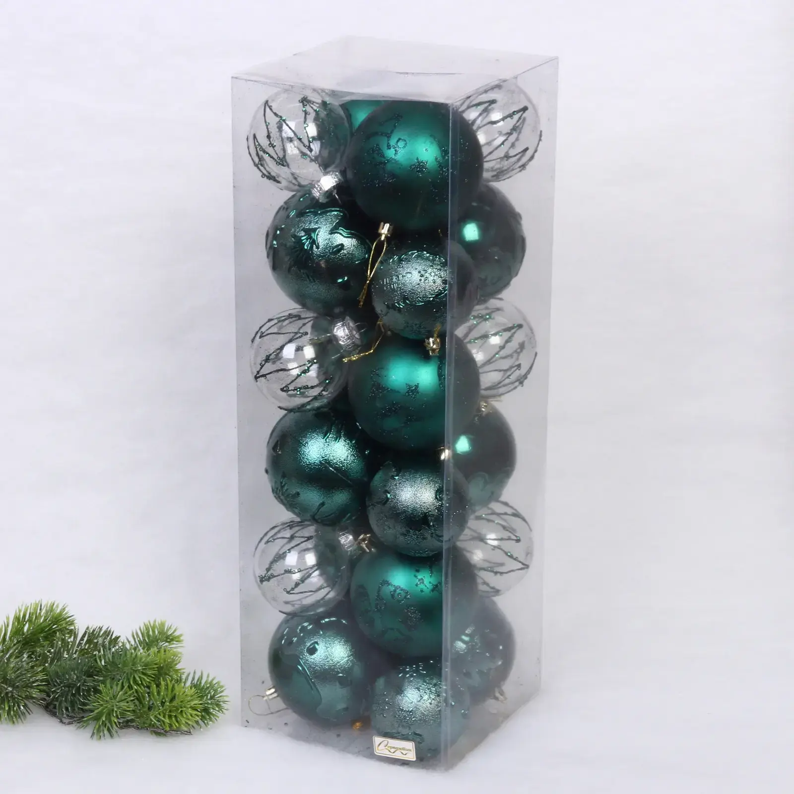 Шары в наборе имеют различные отделки: матовые и глянцевые, с рельефными узорами и гладкой поверхностью. Это создает интересный визуальный эффект и позволяет вам экспериментировать с оформлением. Размеры шаров (8 см и 10 см) идеально подходят для стандартных новогодних елок. Упаковка прозрачная, что позволяет видеть все шары и удобно хранить их после праздников.