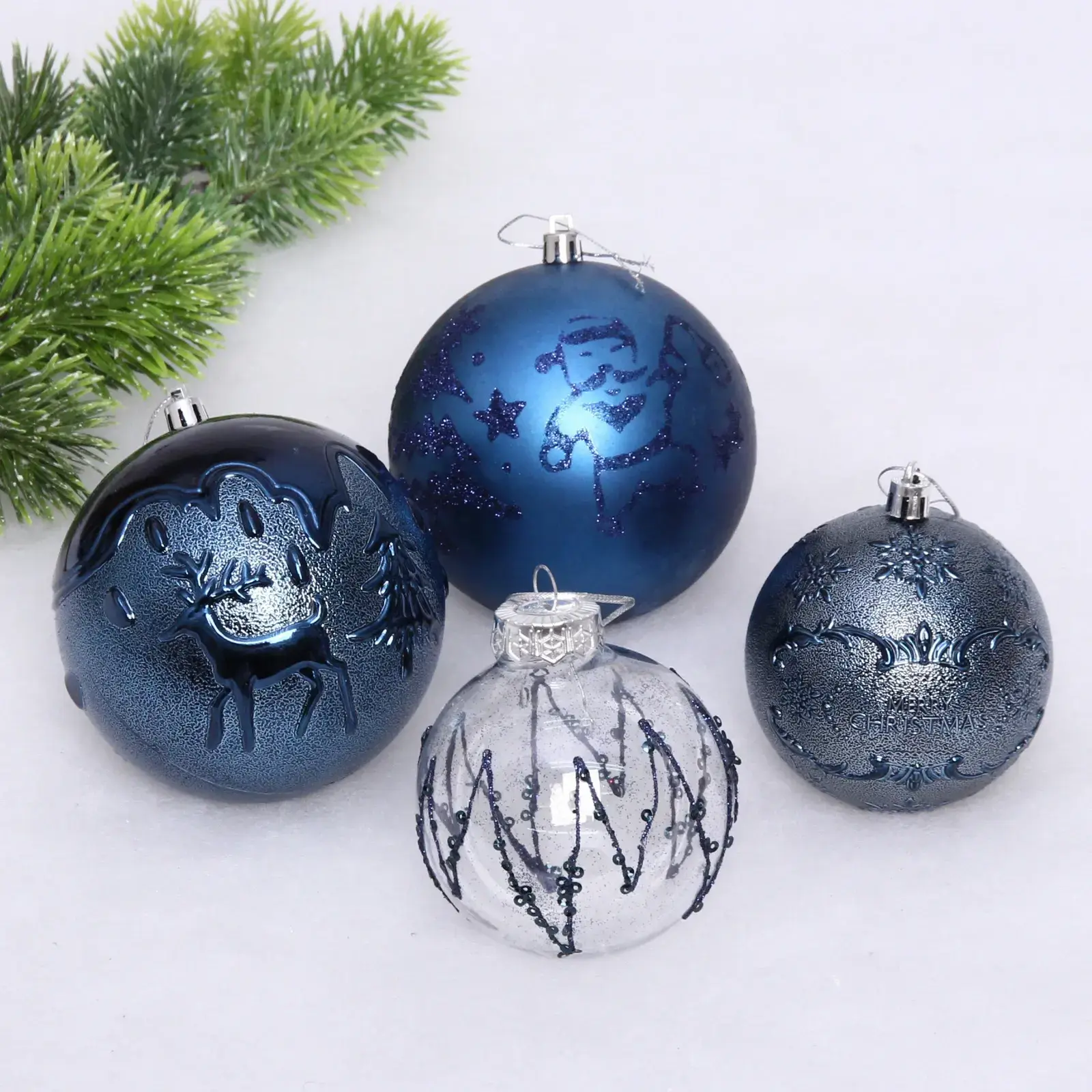 Шары в наборе имеют различные отделки: от матовых до блестящих, а также украшены узорами, что добавляет им индивидуальности. Упаковка выполнена из прозрачного материала, позволяющего видеть содержимое, что делает выбор еще более удобным. Размеры шаров (8 см и 10 см) идеально подходят для создания гармоничного декора на елке или в интерьере.