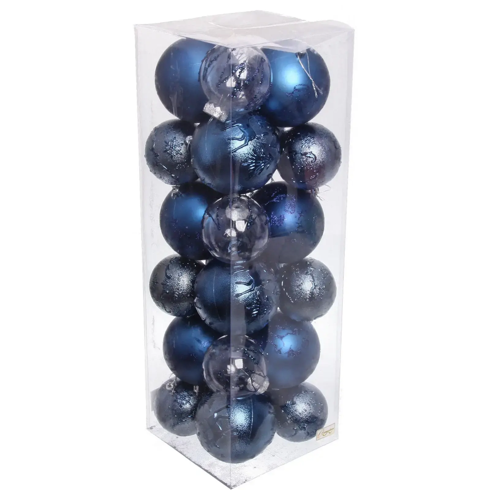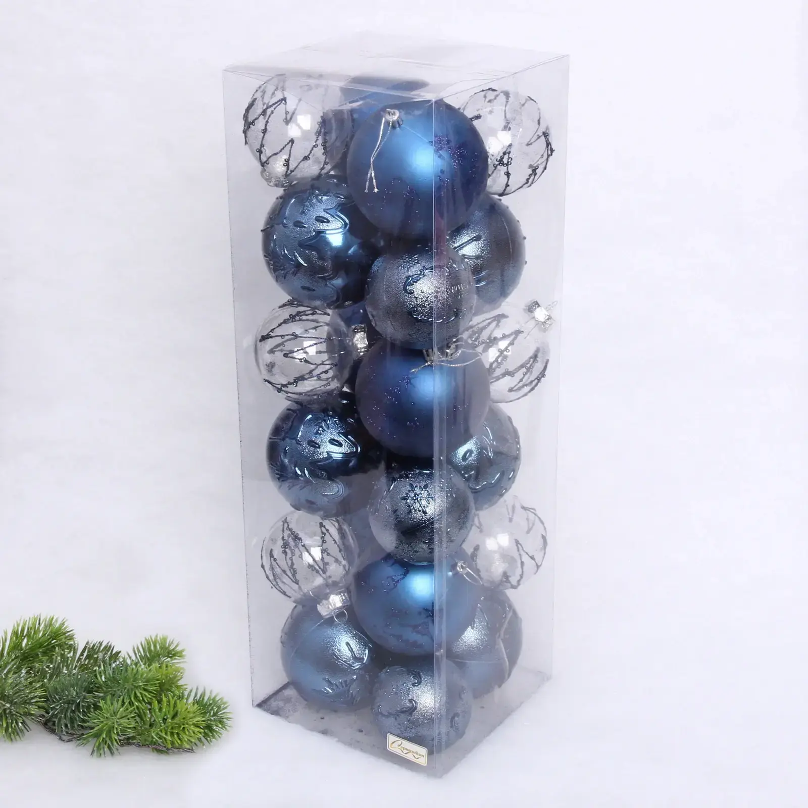 Набор состоит из 24 шаров различных размеров: 8 см и 10 см, что позволяет вам комбинировать их для создания интересных композиций. Эти шары идеально подходят для украшения не только новогодней елки, но и для декорирования интерьера в праздничный период. Они легко крепятся на ветки благодаря металлическим петелькам, что делает процесс украшения простым и приятным.