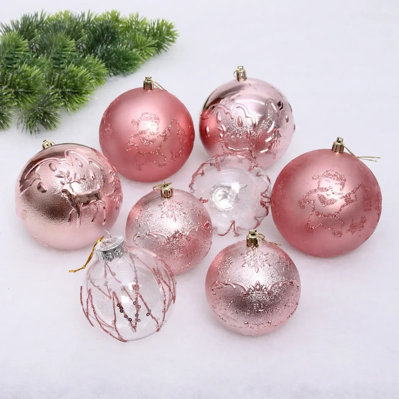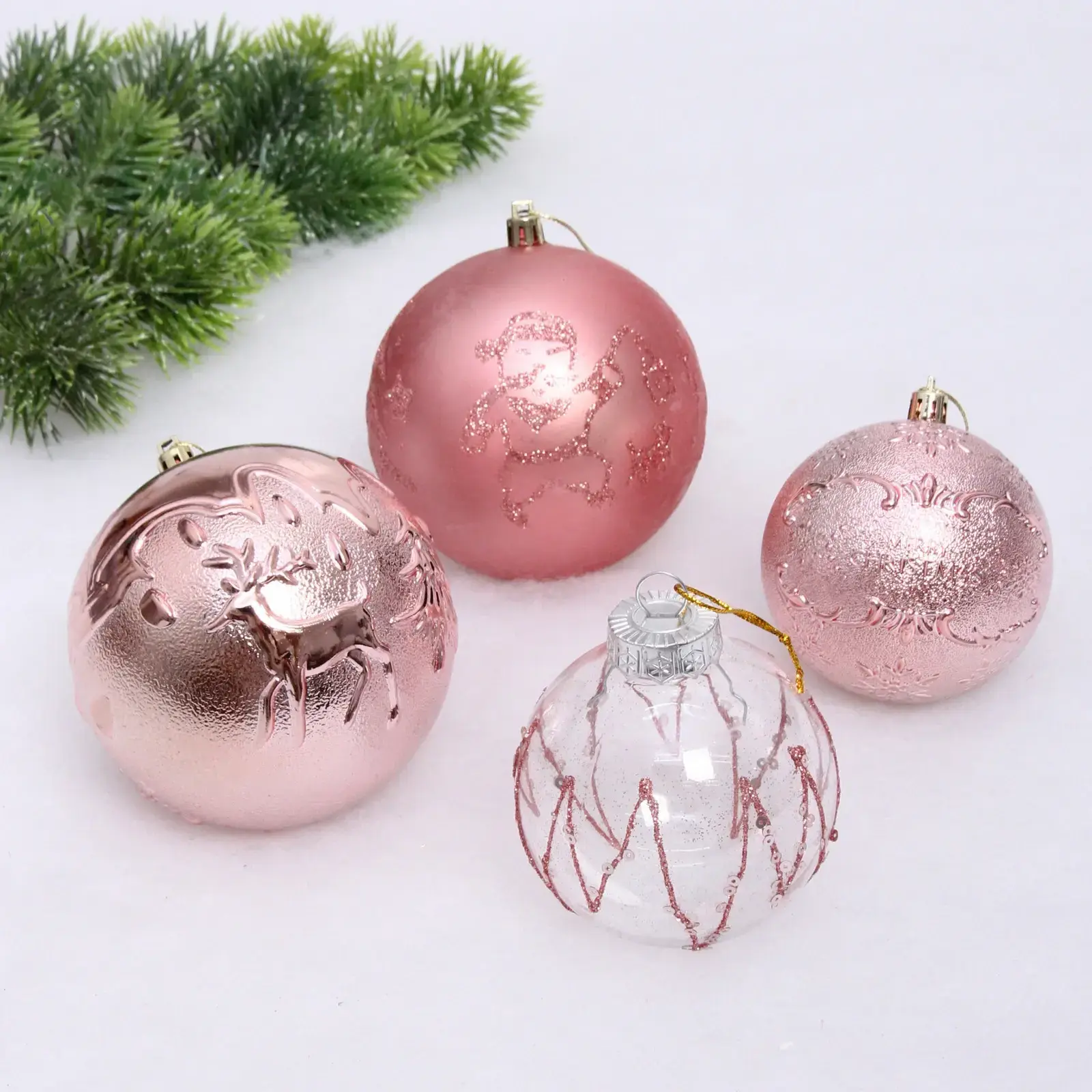 Этот набор шаров станет идеальным дополнением для вашего новогоднего декора. Сочетание различных оттенков розового и золотистых деталей придаст вашему интерьеру особый шарм и уют. Шары выполнены из прочного пластика, что обеспечивает их долговечность и безопасность при использовании. Они идеально подходят для украшения новогодней ёлки, создания праздничного настроения и оформления интерьера.